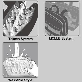 シチュエーションに合わせてシステムに対応したサブポケットやアクセサリーを、自由に組み替えられる「MOLLE」システムを採用。