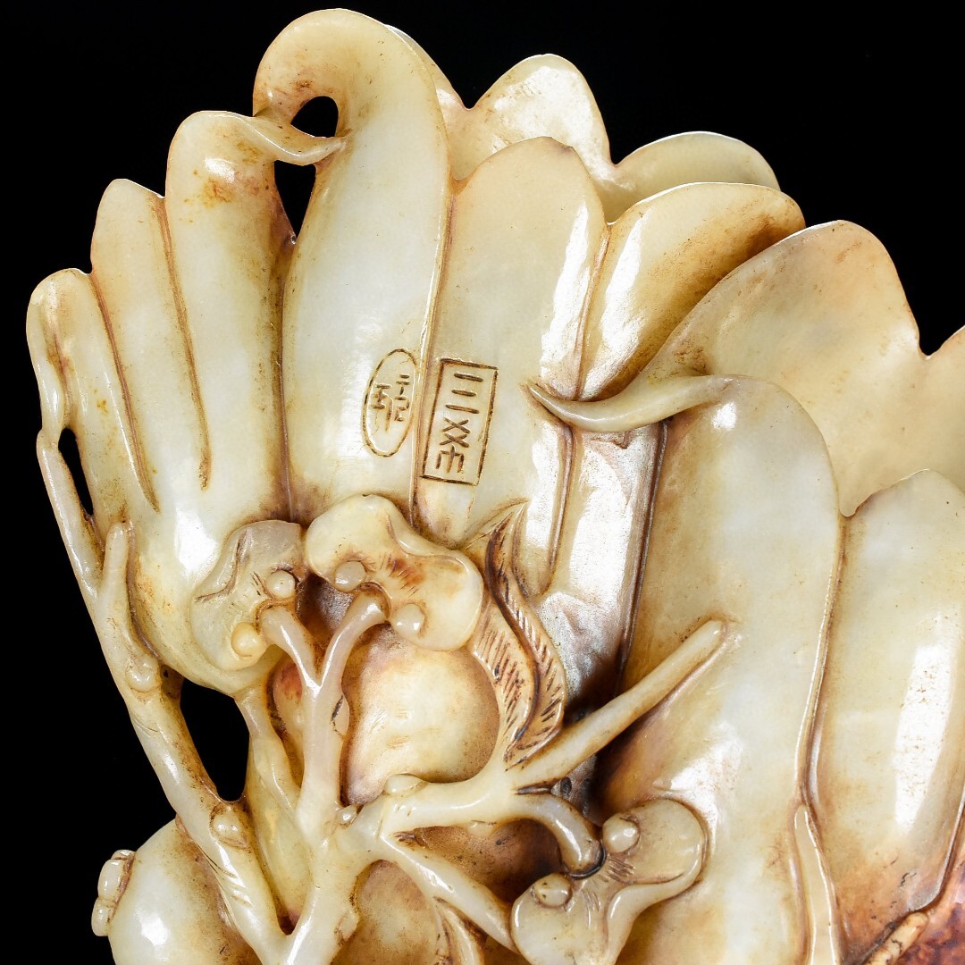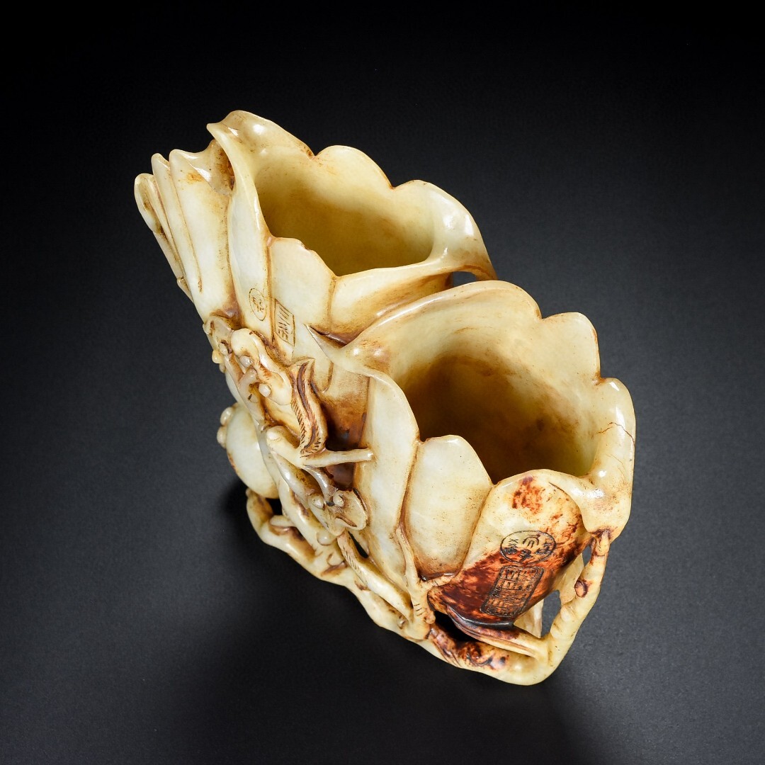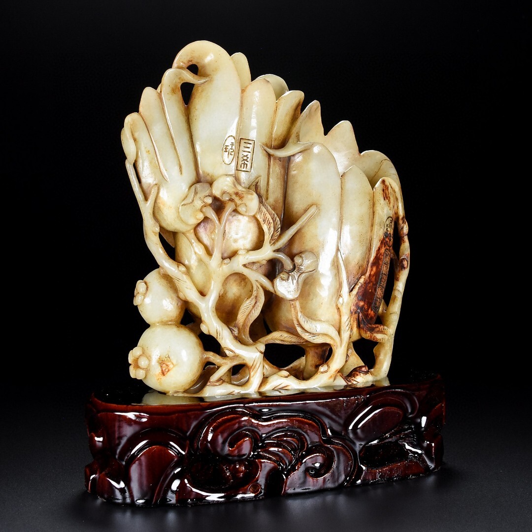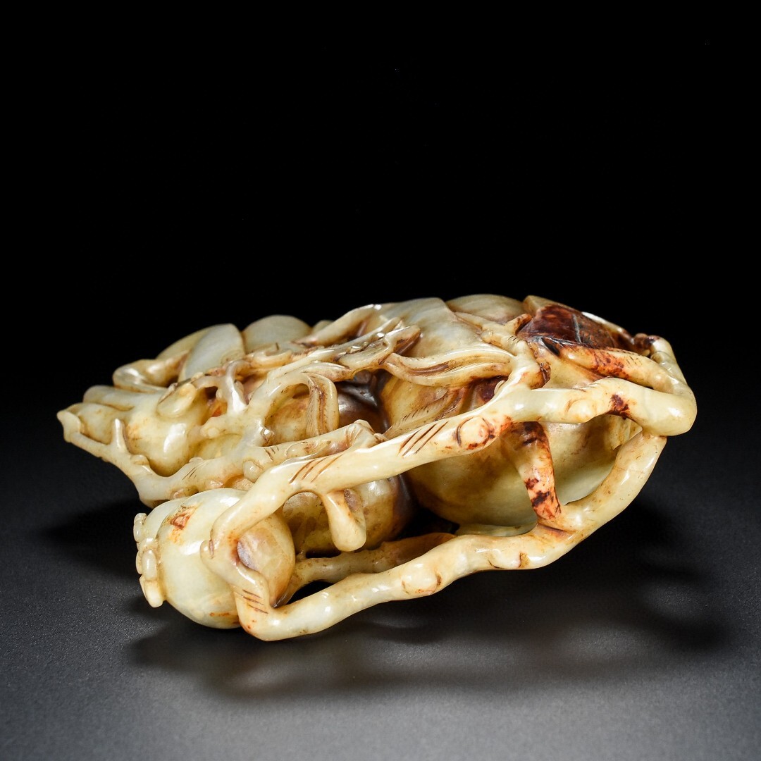 旧蔵 清 乾隆年製 玉彫 和田老玉 花插 筆筒 筆道具 極細工 中国古玩 古美術 骨董品 202-13
