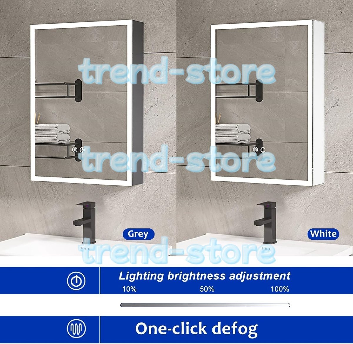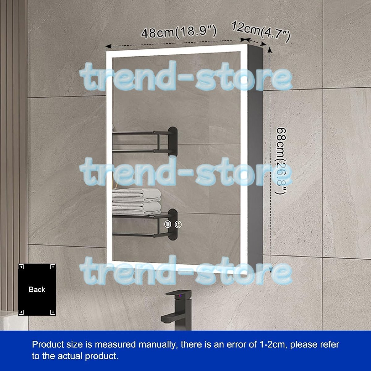 LED 照明付き バスルーム ミラー キャビネット 霧防止機能付き 壁掛け式 キャビネット付き 収納機能 化粧品用 48*68cm ライト付き (Color : Gray)