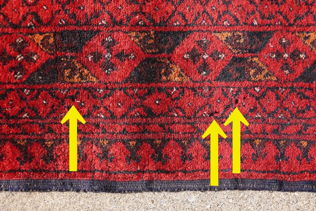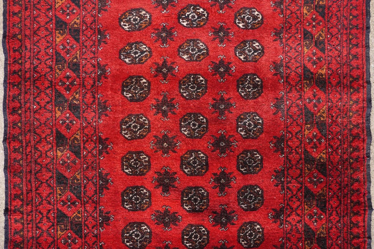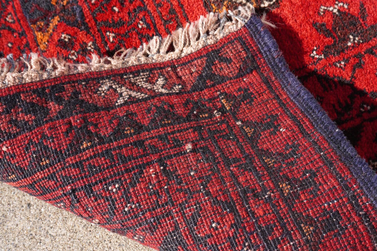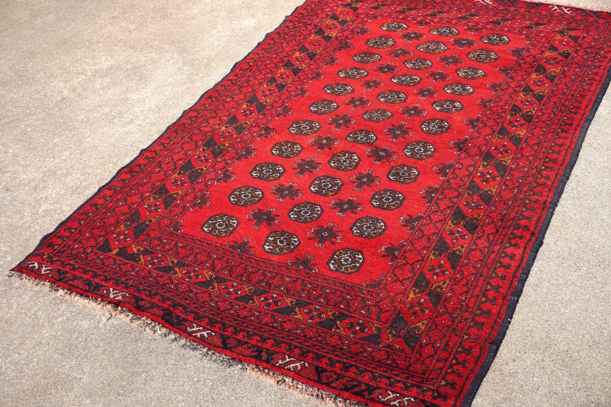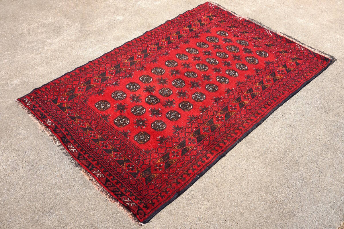 アフガニスタン・トルクメン族の、セミオールドアフガンカーペット(手織り絨毯)。