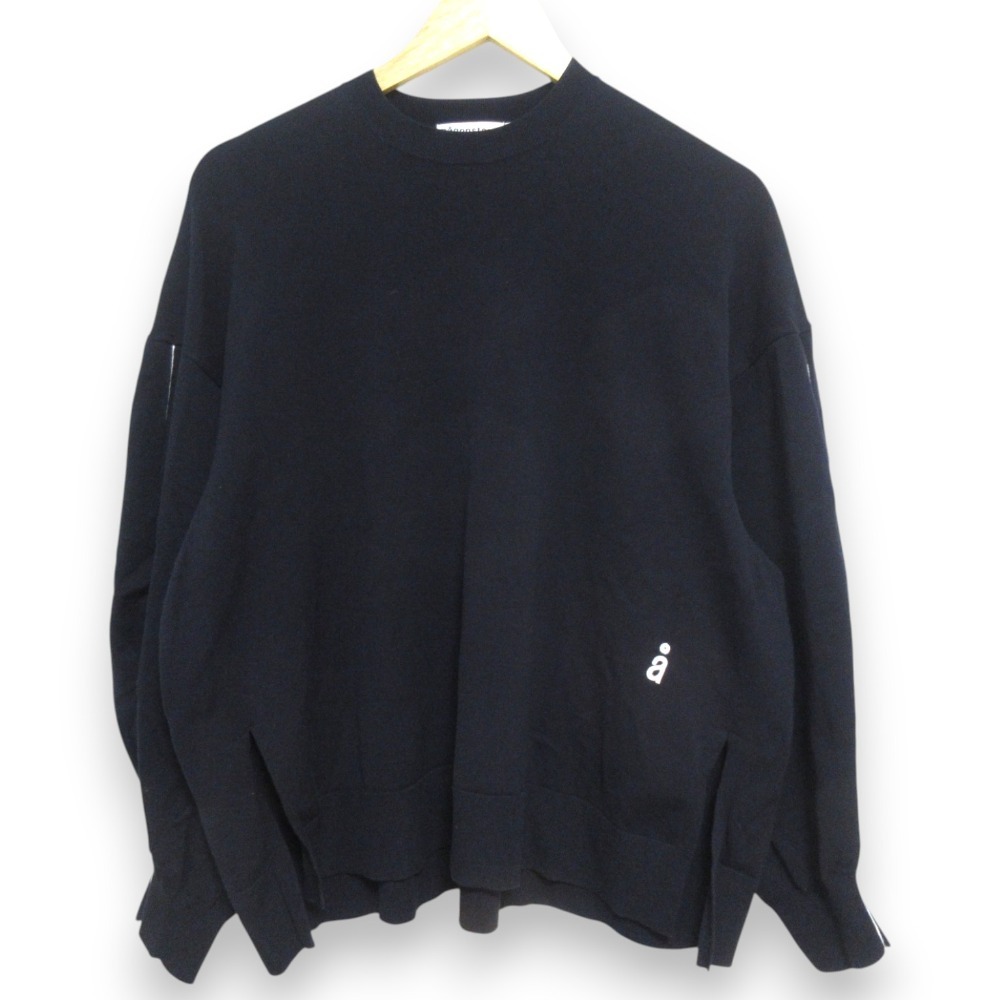 美品 23SS nagonstans ナゴンスタンス square sleeves pullover ロゴ ニット セーター カットソー 470GS470-1050 M ダークネイビー