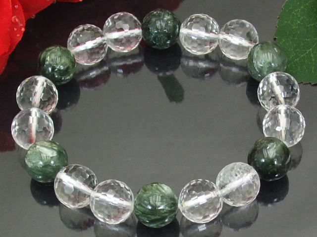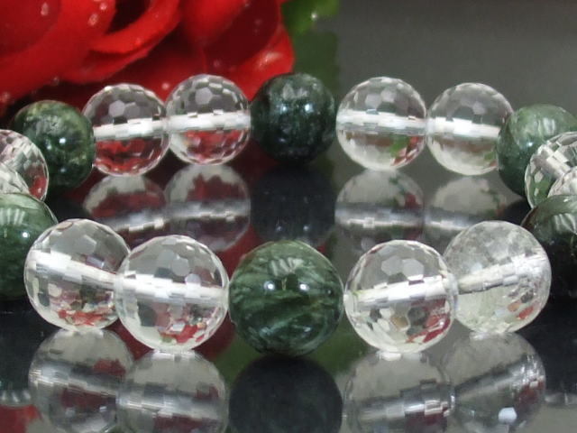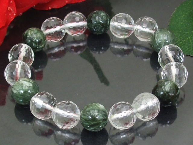 ロロロ 素材 ロロロ セラフィナイト12ミリ 128面カット水晶12ミリ 約21cm(内径約18cm前後)