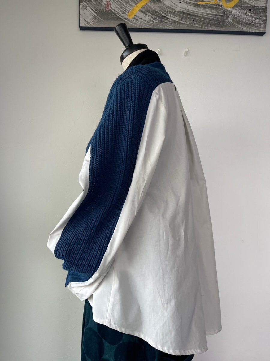 レディース トップス シャツ ニット フェイクレイヤード風 長袖 おしゃれ ミセス 個性 美品