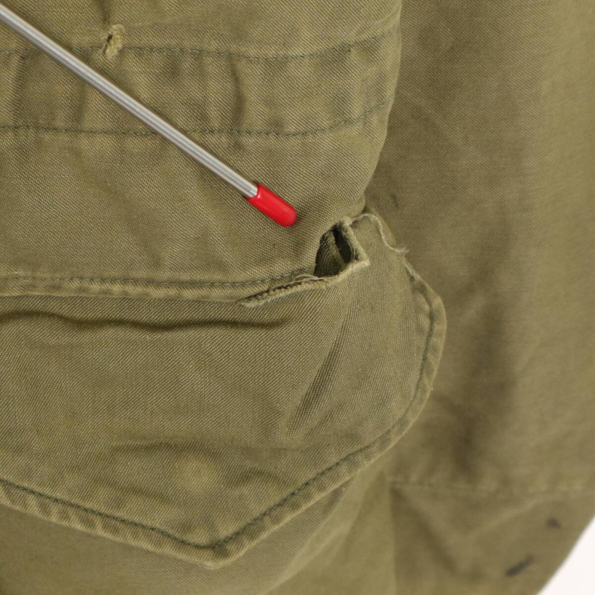 [商品管理番号] A3963 [ブランド] /米軍実物 U.S.ARMY [サイズ] X-SMALL相当 [実寸サイズ] 肩幅:約47cm 着丈:約68cm 身幅:約53cm 袖丈:約58cm [主な素材] 表地 : コットン [色] オリーブ [仕様] 70年代 フード収納可能、フードドローコード、ウエストドローコード、ライナー接続可能、ベルクロストラップ ヴィンテージ、ミリタリー M-65 フィールドジャケット 3rd [状態] 特記事項: 右袖ベルクロ欠損 | |||
