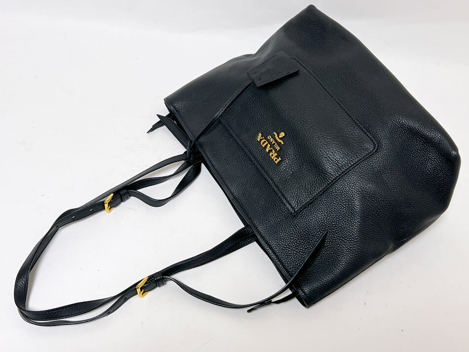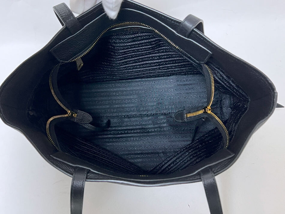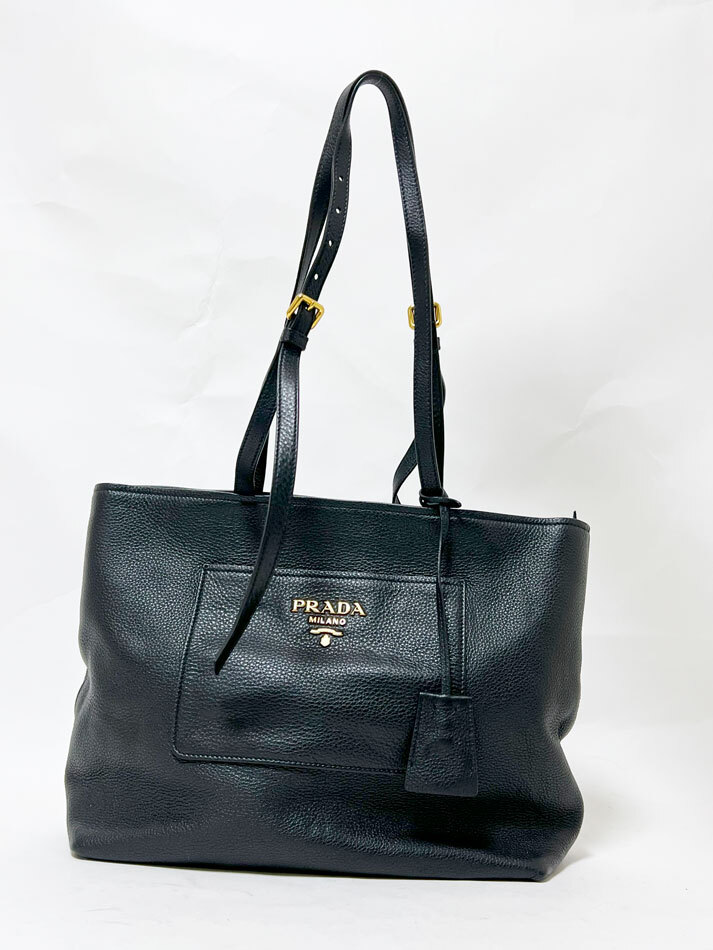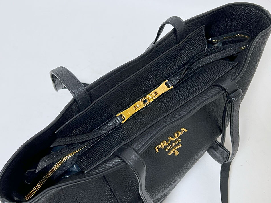 | 商品説明 | ファスナー開閉式 外ファスナーポケット×1 内ファスナーポケット×1 プラダの肩掛け可能なトートバッグです。 |