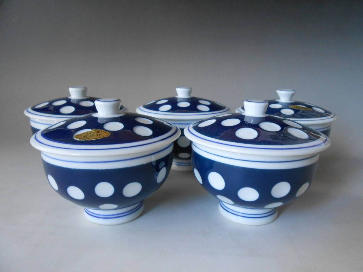 有田焼! ☆ルリ釉蓋付汲出5客セット☆ 未使用 湯呑 湯飲 煎茶 ほうじ茶 日本茶