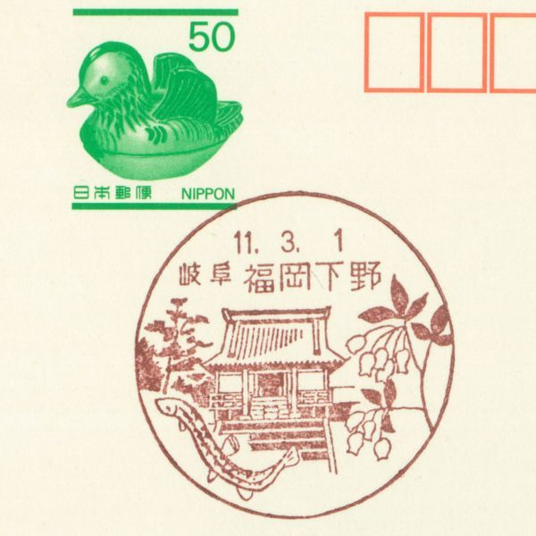 風景印☆初日☆岐阜・福岡下野・H11.3.1