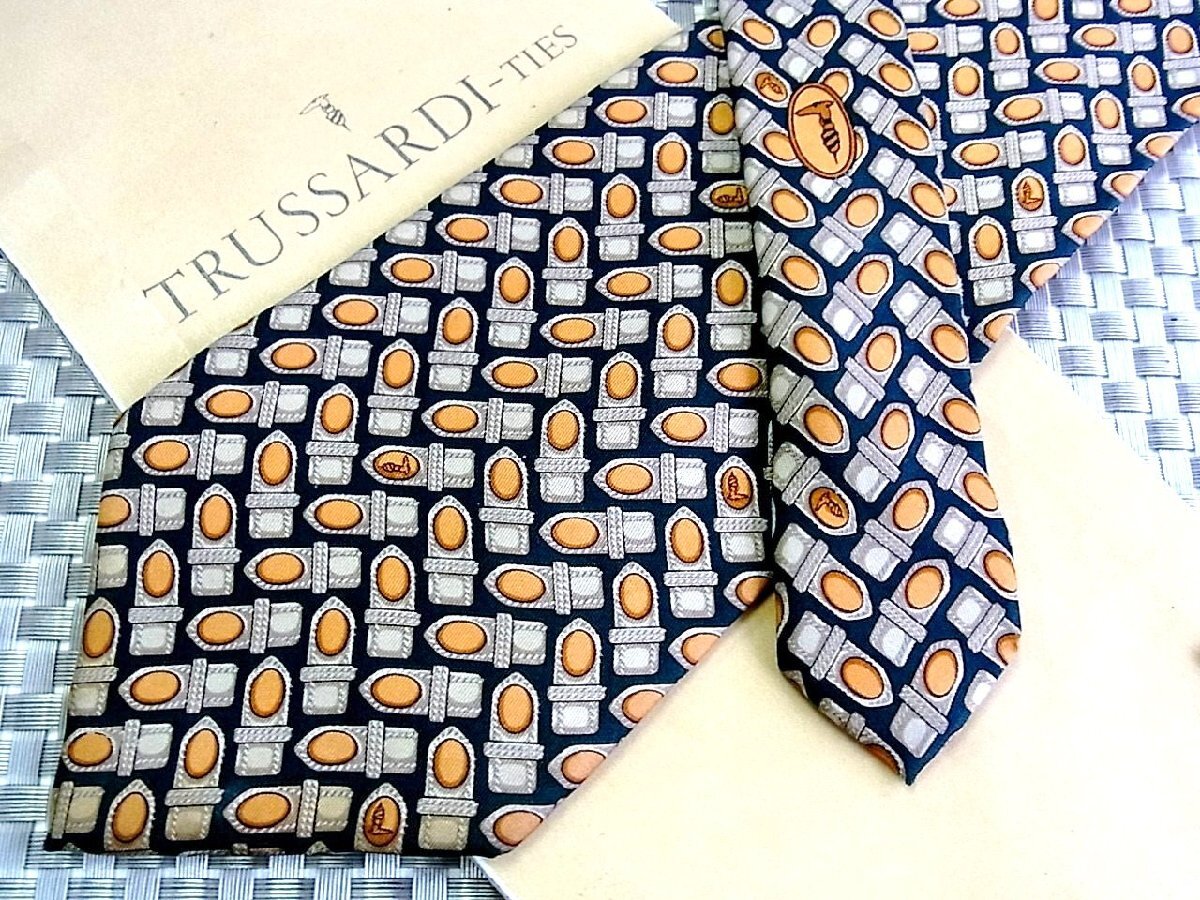 【在庫処分セール】●特売●FK9686●トラサルディ【ベルト ロゴ入 柄】ネクタイ●