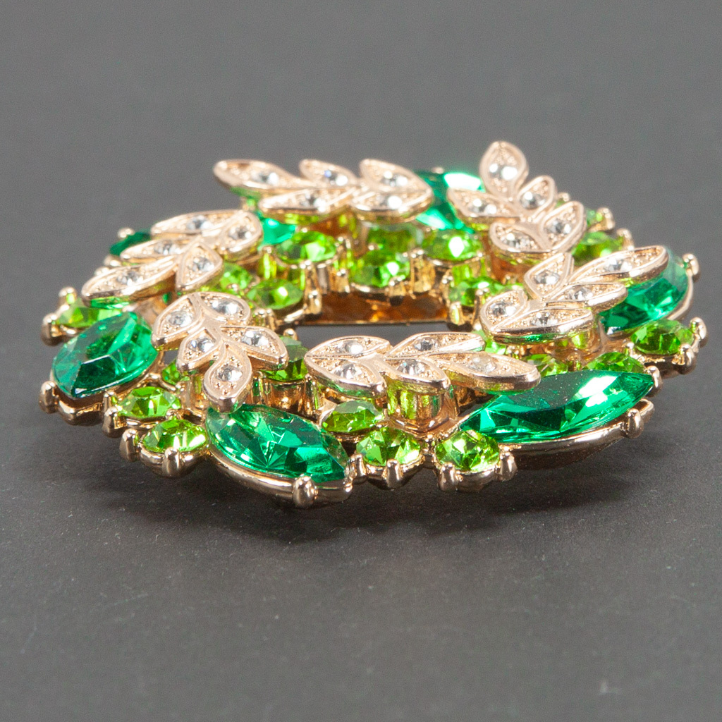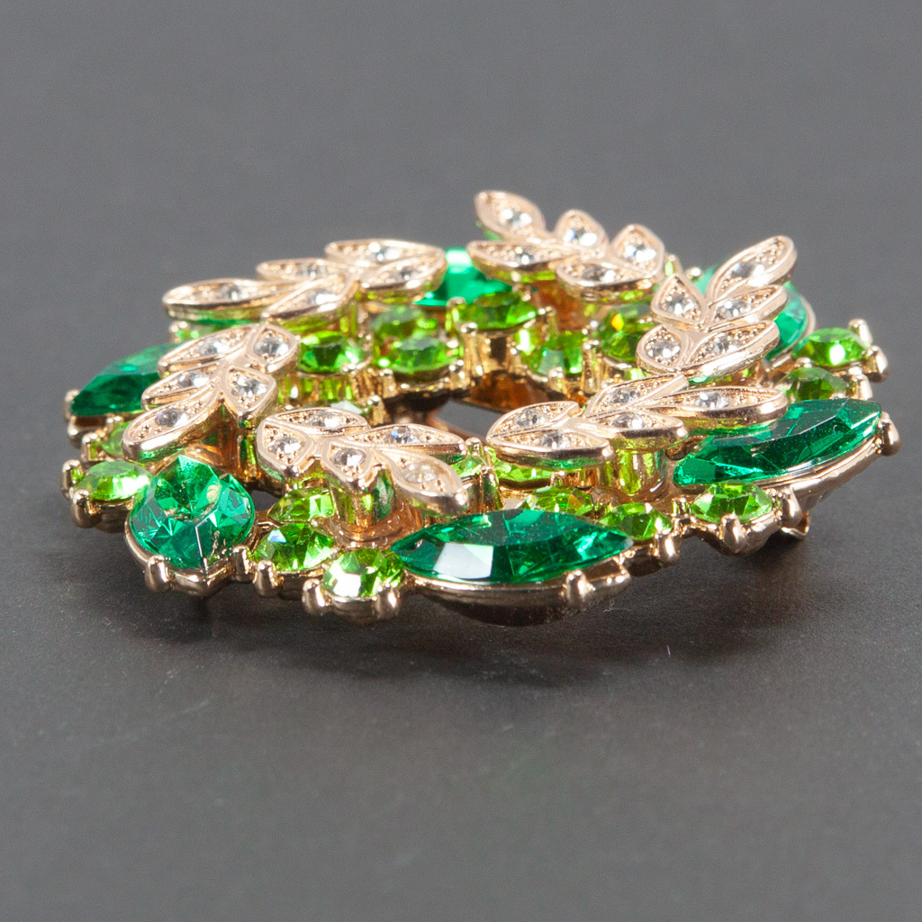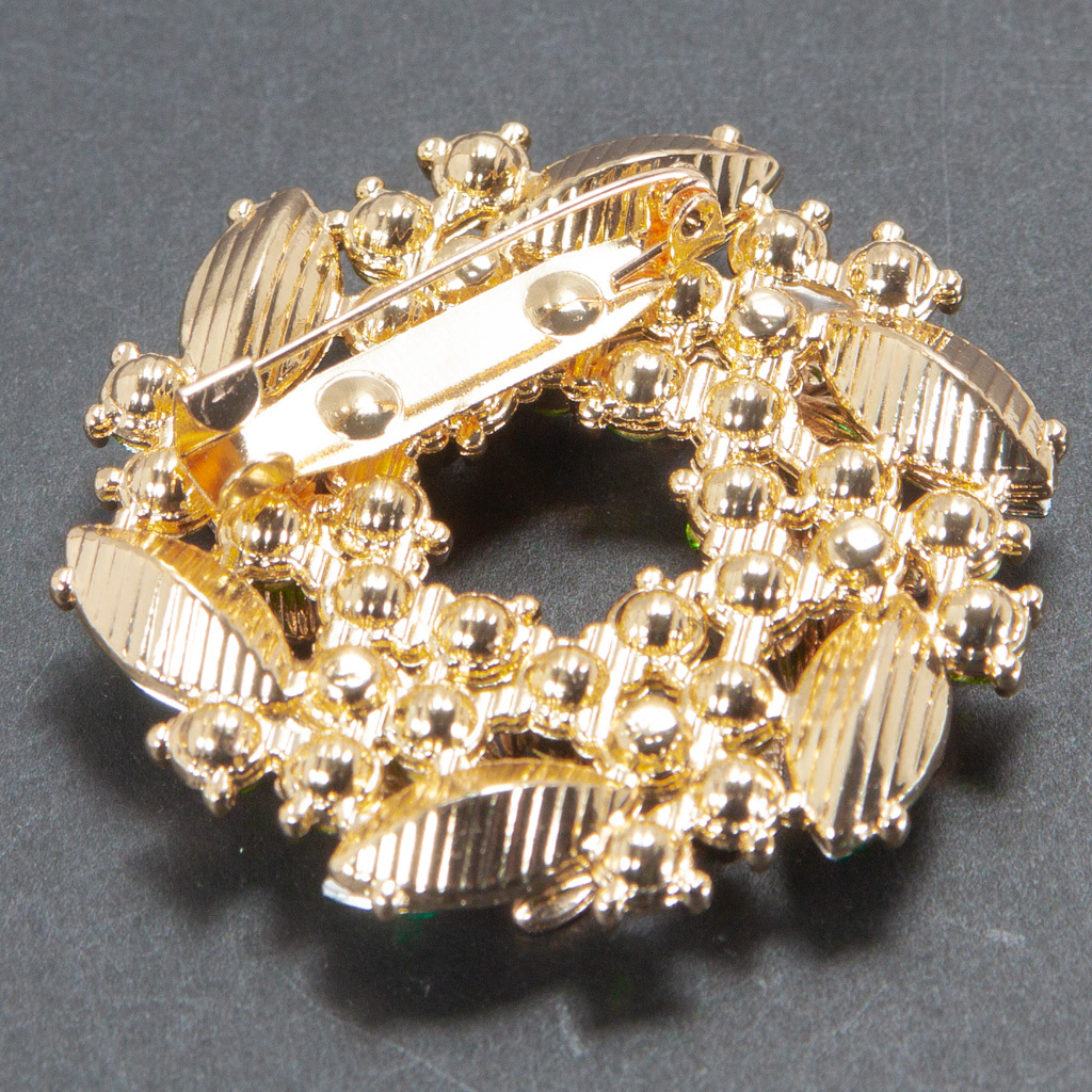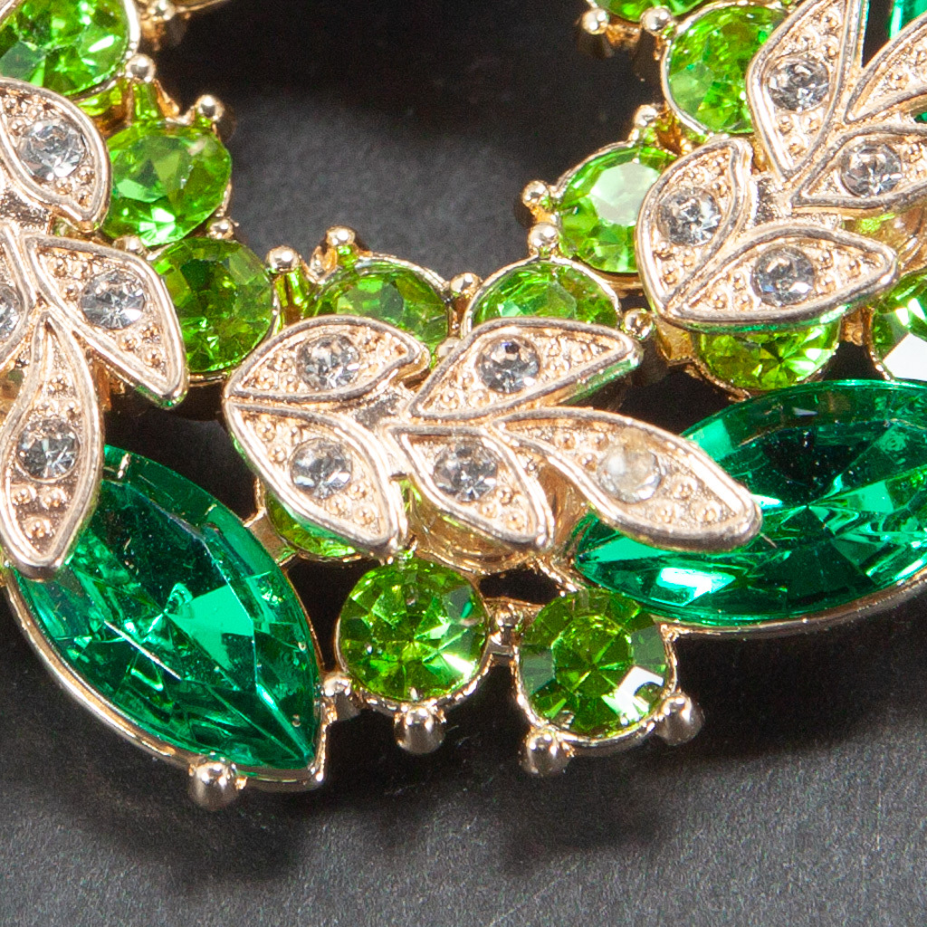 リース型ラインストーンブローチ グリーン リーフデザイン サークル型 新品 未使用品