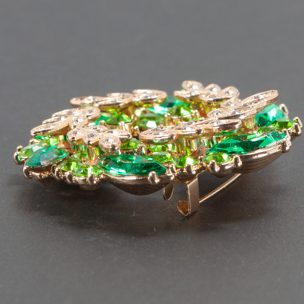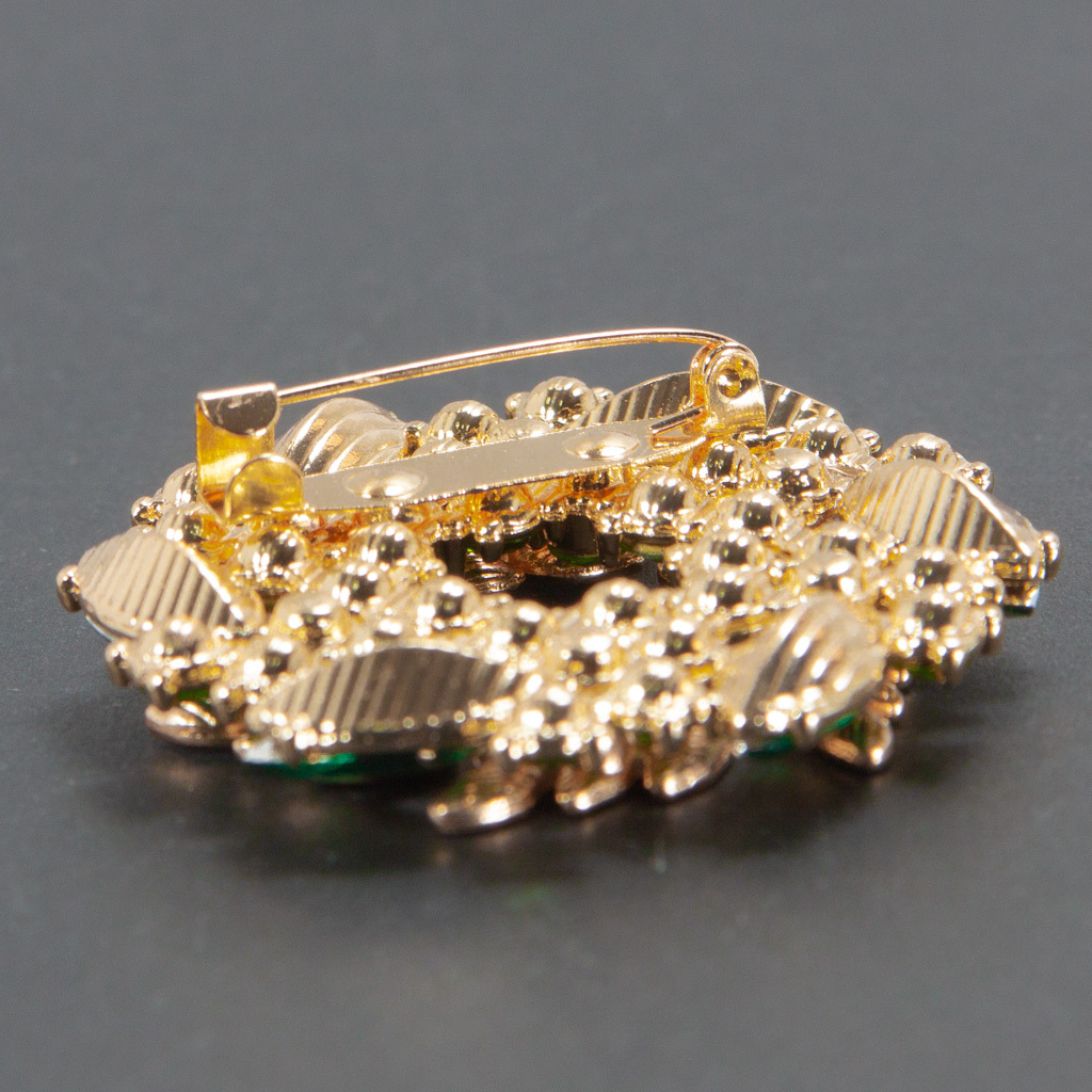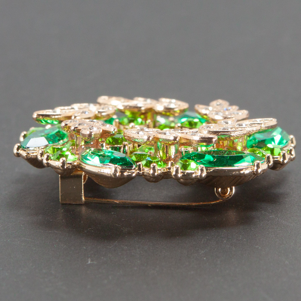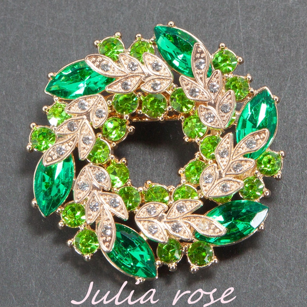 リース型ラインストーンブローチ グリーン リーフデザイン サークル型 新品 未使用品