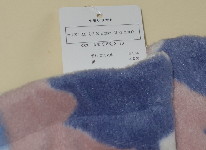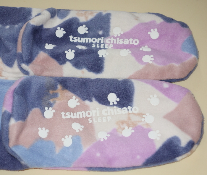 足の裏部分は滑り止め加工されて、フローリングでも安心、滑り止めはツモリさんのロゴと可愛いネコの足跡が散りばめられた、とっても可愛いデザインになっています。