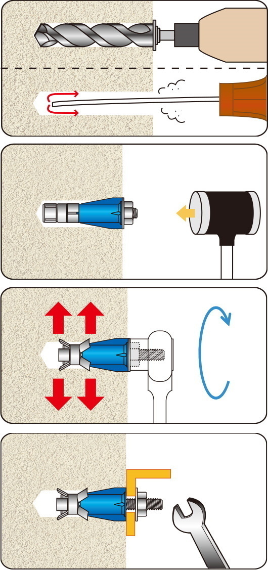 ●スリーブ2ヵ所が開くダブル拡張で強力固着