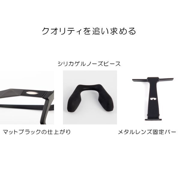 枠の真ん中にメタル固定バーがあります。レンズを確実に固定。ブレることなくクリアな視野を実現します。