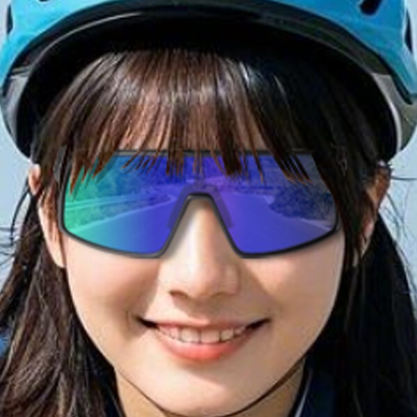 深く巻き込むシールドレンズが顔まで広いエリアを保護、眩しい太陽光でも悪天候の風雨でも安心感アップ。