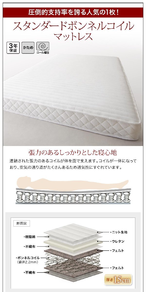 組立設置付き 棚・コンセント付きフロアベッド mon ange モナンジェ スタンダードボンネルコイルマットレス付き クイーン(Q×1)【フレームカラー:ウォルナットブラウン】【マットレスカラー:ホワイト】です。