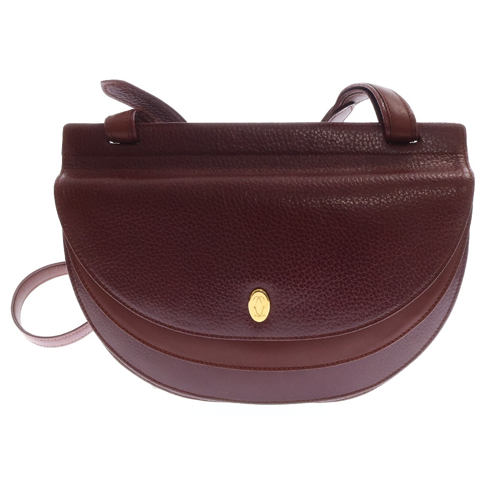 Cartier カルティエ マスト Wフラップ ショルダーバッグ ワインレッド レザー