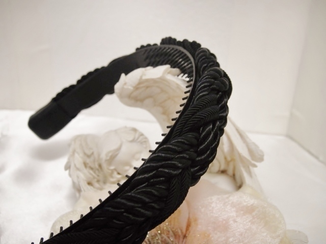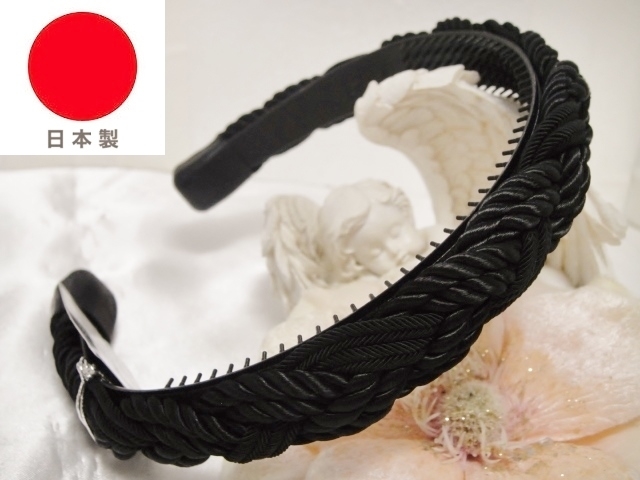 ♪ 新品 カチューシャ 日本製『高品質/中太/ロープ編込み/頭が痛くならない/パールブラック/黒』♪