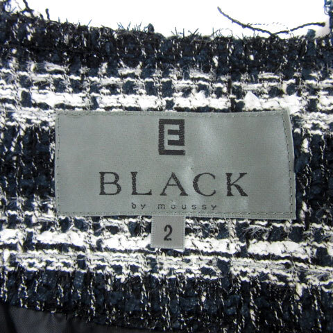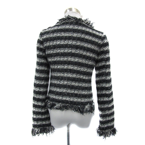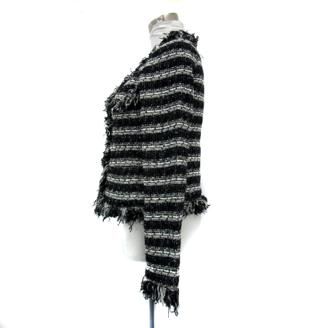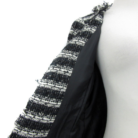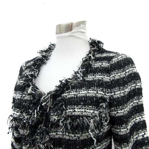 ブラック バイ マウジー BLACK by moussy ノーカラージャケット ミドル丈 ボーダー柄 ツイード フリンジ 2 黒 ブラック 白 ホワイト /YS37 レディース