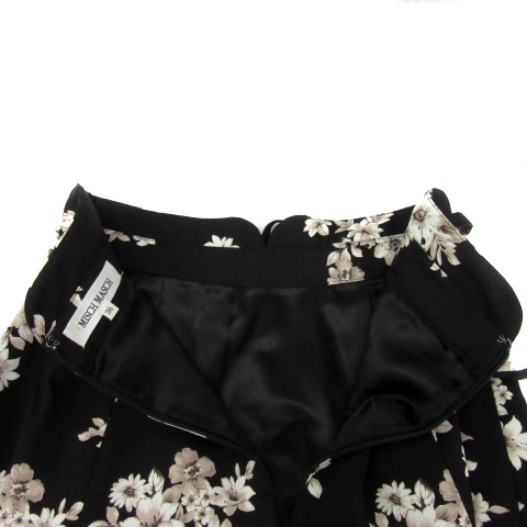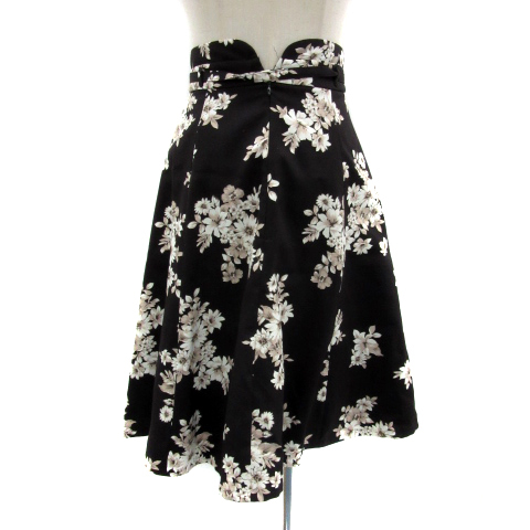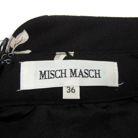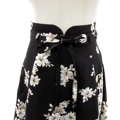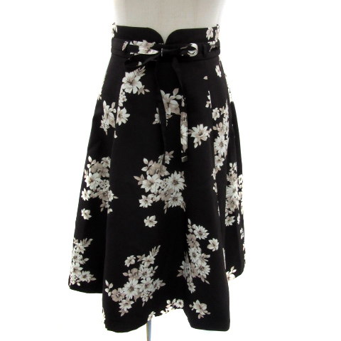 ミッシュマッシュ MISCH MASCH フレアスカート ミモレ丈 花柄 リボンベルト付き 36 S マルチカラー 黒 ブラック /YS12 レディース