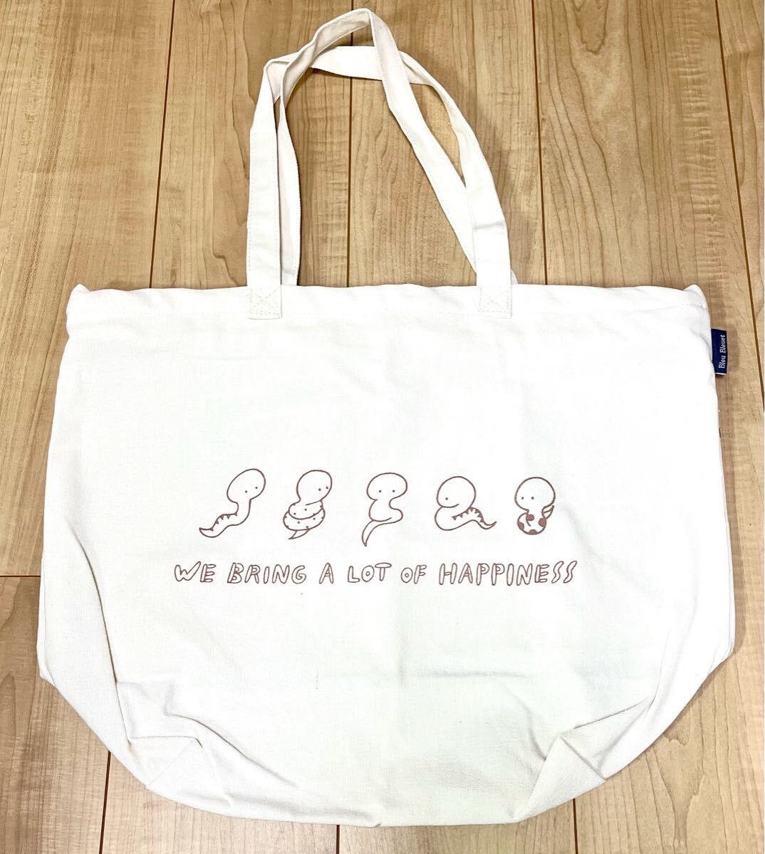 新品 ブルーブルーエ ヘビ イラスト ジッパー付き 大きめ トートバッグ エコバッグ