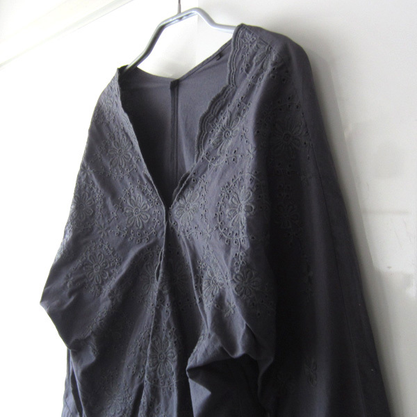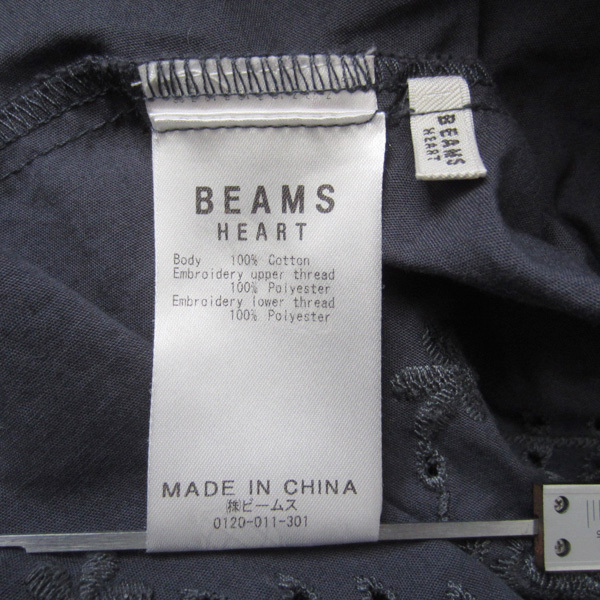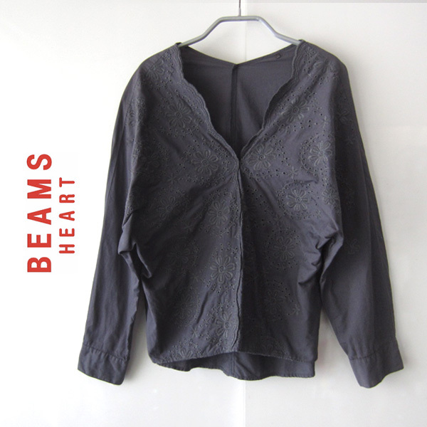 美品 BEAMS HEART/ビームスハート★ 刺繍 レース ドルマン 長袖シャツ グレー