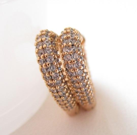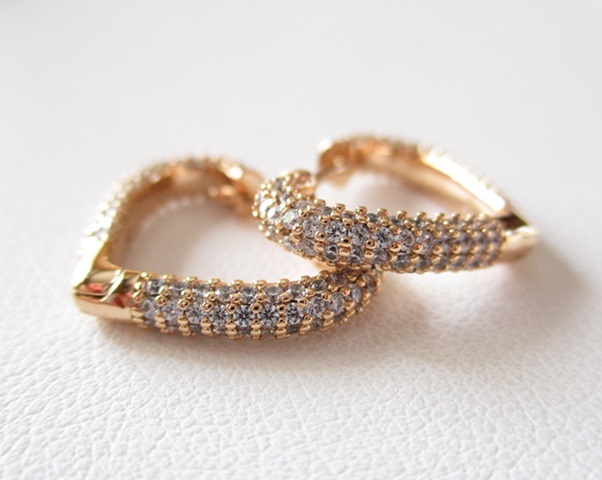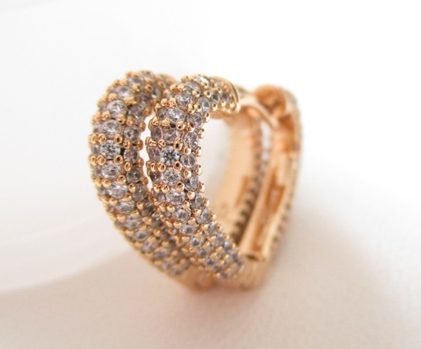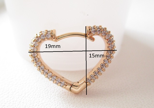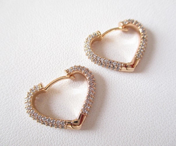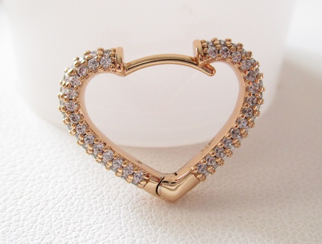 複雑なカットで美しい輝きを放つキュービックジルコニアのフープピアスになります。ハートシェイプと燦燦と輝くCZがフェミニンな印象です。