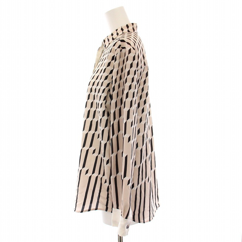 ポールスミス ブラック Paul Smith BLACK シャツ ブラウス 総柄 長袖 38 ピンクベージュ 黒 /YM レディース