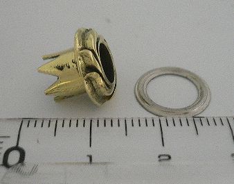 真鍮製、直径:12mm、ホールの大きさ:6mm、重さ:2g、最適な革の厚さ:約4mm、はめこむ穴の大きさ:7mm穴でジャストです。定価\1500