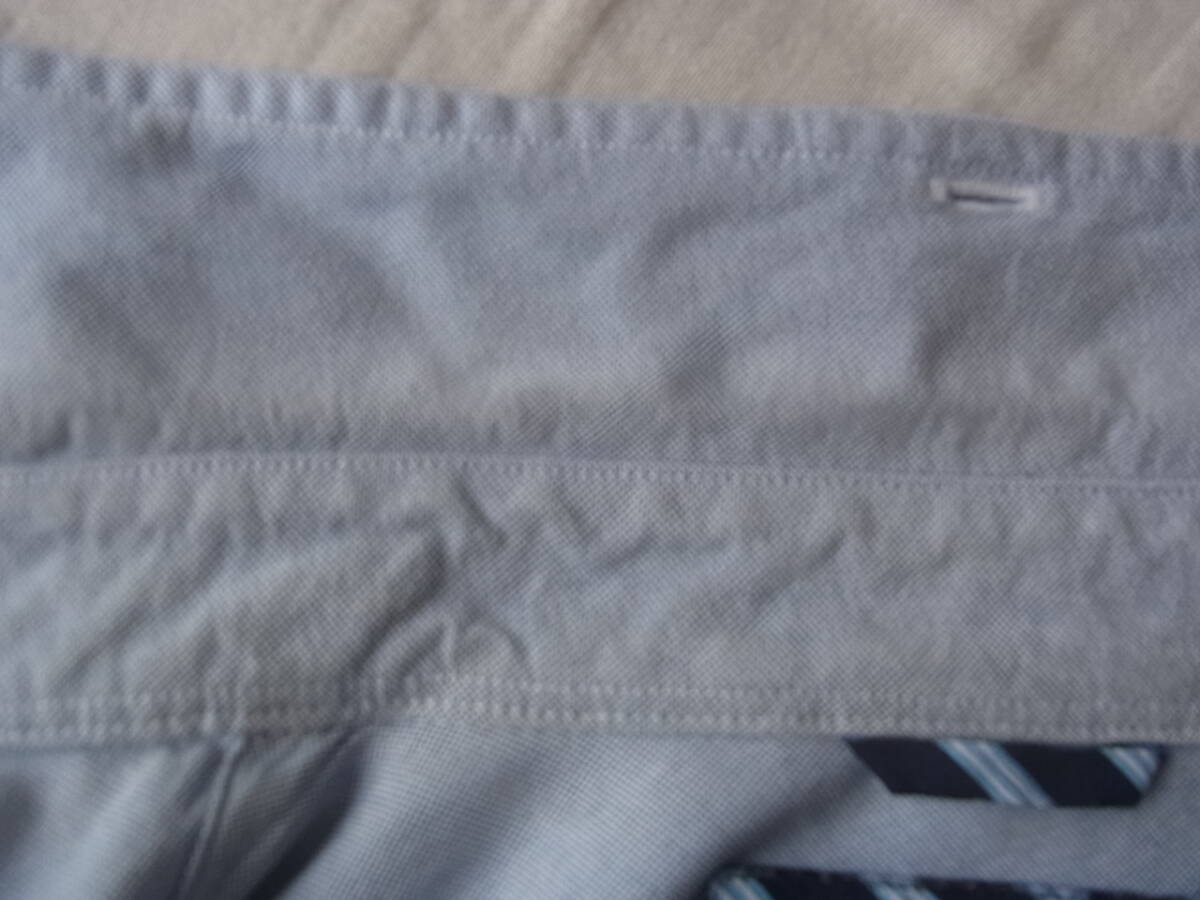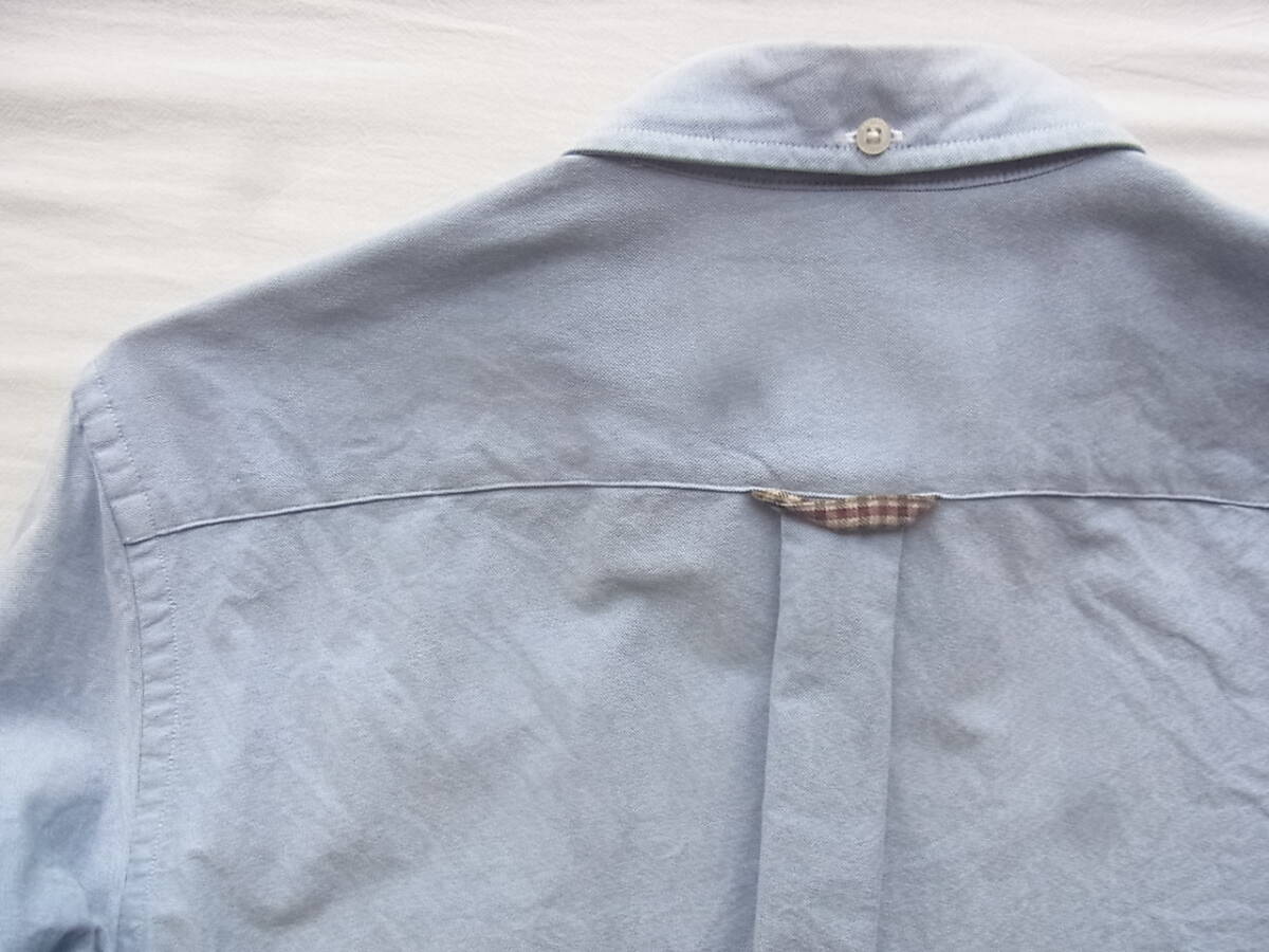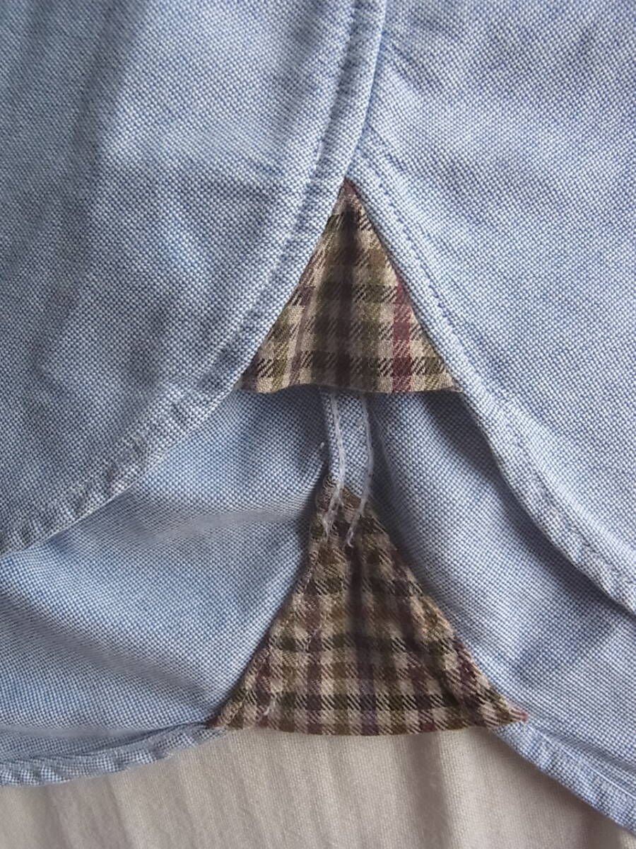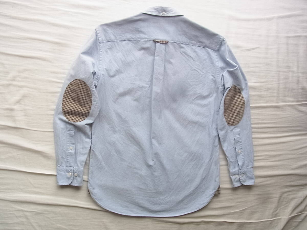 ブルックスブラザーズのスーピマコットンオックス素材でエルボーパッチ付きのボタンダウンシャツになります。USEDで着用感と、前裾の前立て部分に9枚目の画像の様な薄く汚れが御座います。それ以外には特に目立ったダメージ等は御座いません。