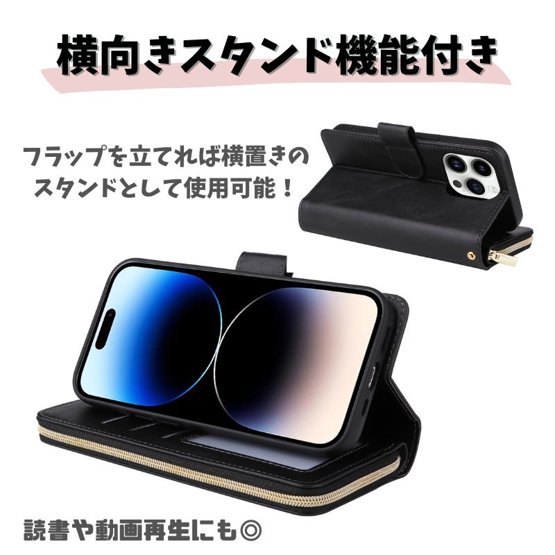 カードポケットx9 収納ポケットx1の充実の収納力お財布としての機能もあり、収納ポケットには折りたたみ紙幣を入れることができ、コインケース 、キーケース 、 領収書入れ としても利用可能。さらに全体を収納できるファスナー付きなので、大切なものを落とす心配もなく、安心して持ち運び可能です。