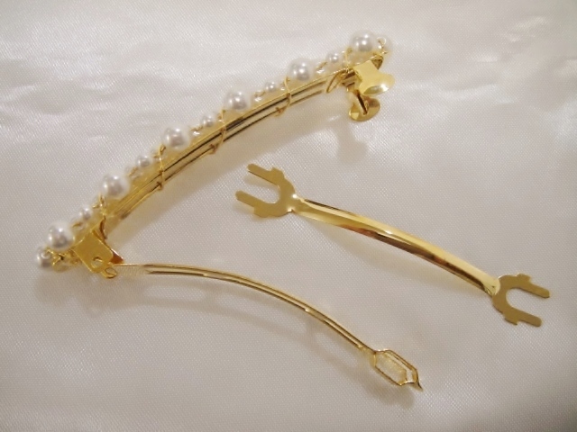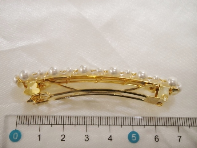 バレッタ本体、クリップ等にメッキ加工が施されておりますが経年劣化による色の変色が生じる場合がございます。