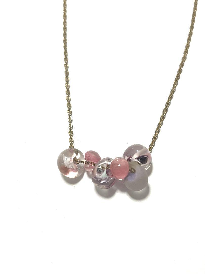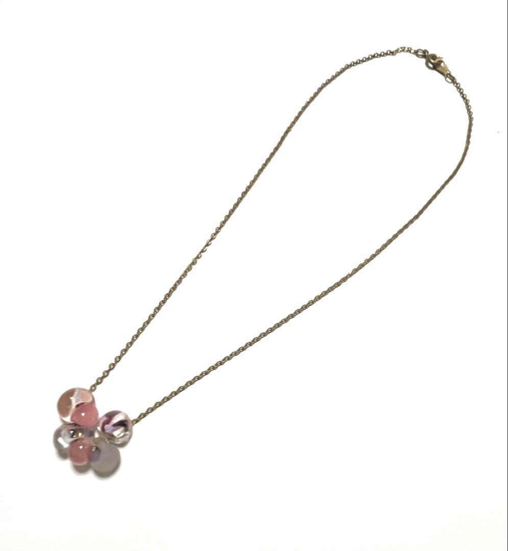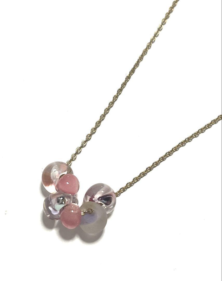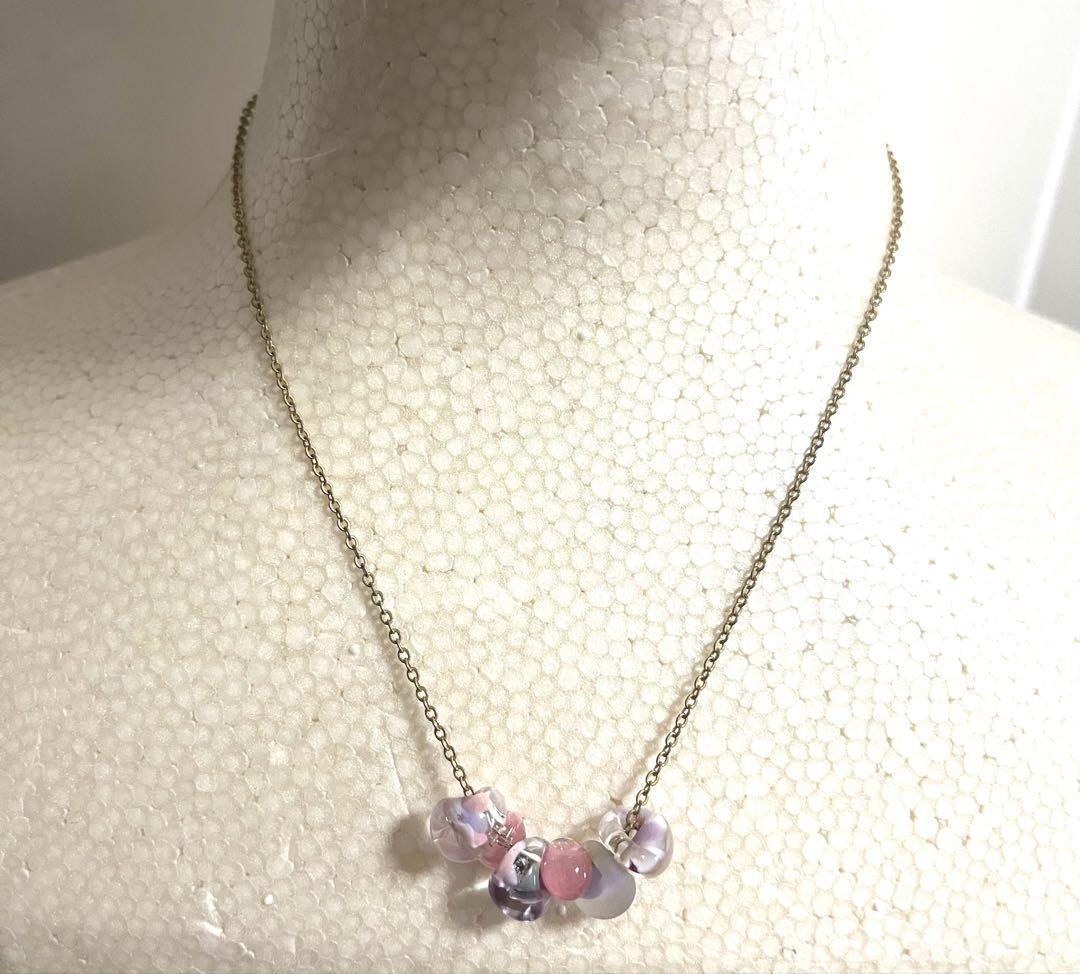 ピンクと紫のガラスビーズを使用したカジュアルなネックレス。