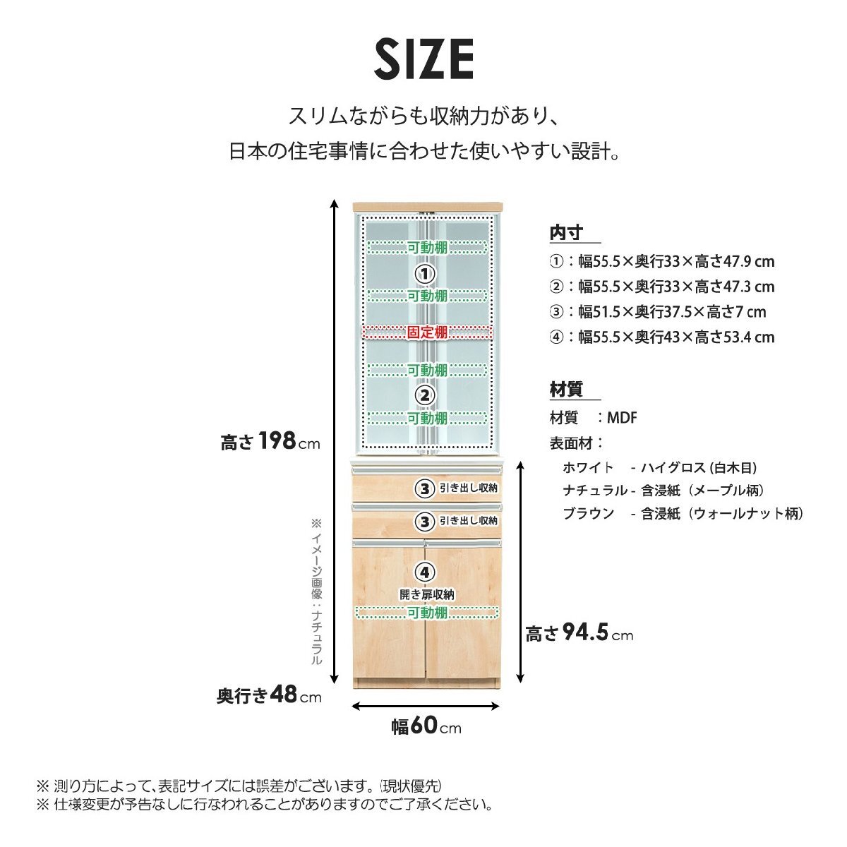 商品サイズ本体 :幅60×奥行48×高さ198 cm