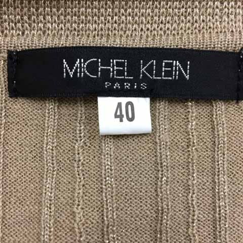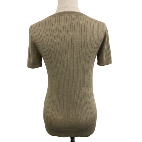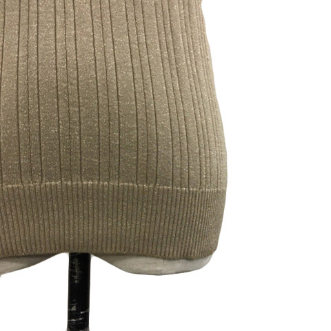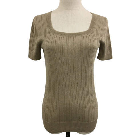 ミッシェルクラン MICHEL KLEIN セーター ニット プルオーバー スクエアネック リブ ラメ 半袖 40 ベージュ 茶 ブラウン レディース