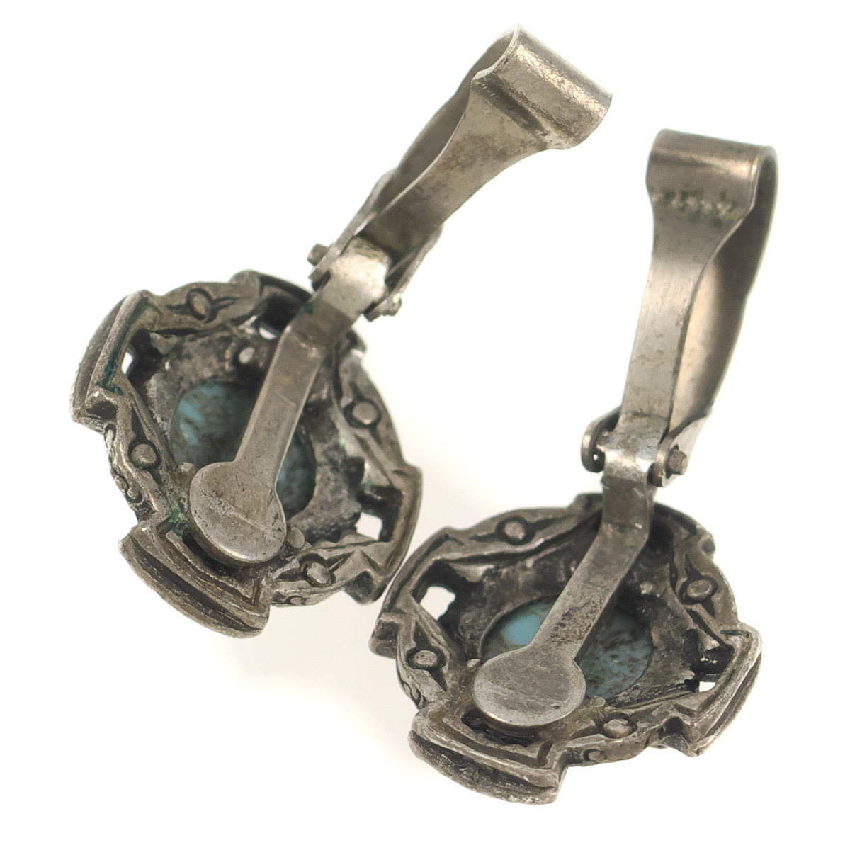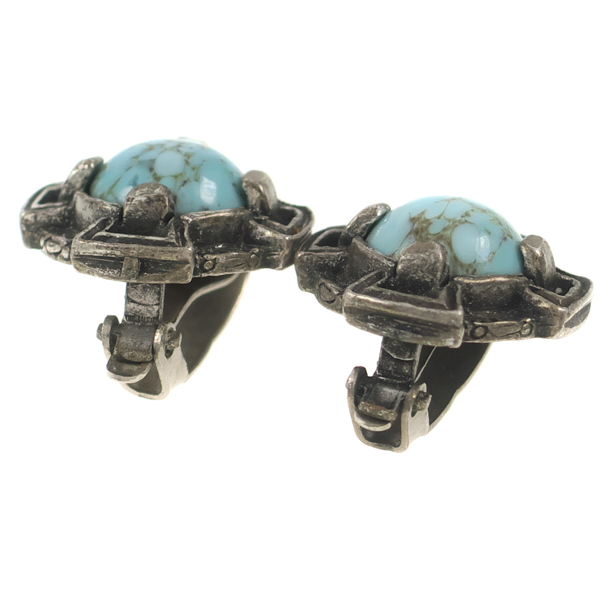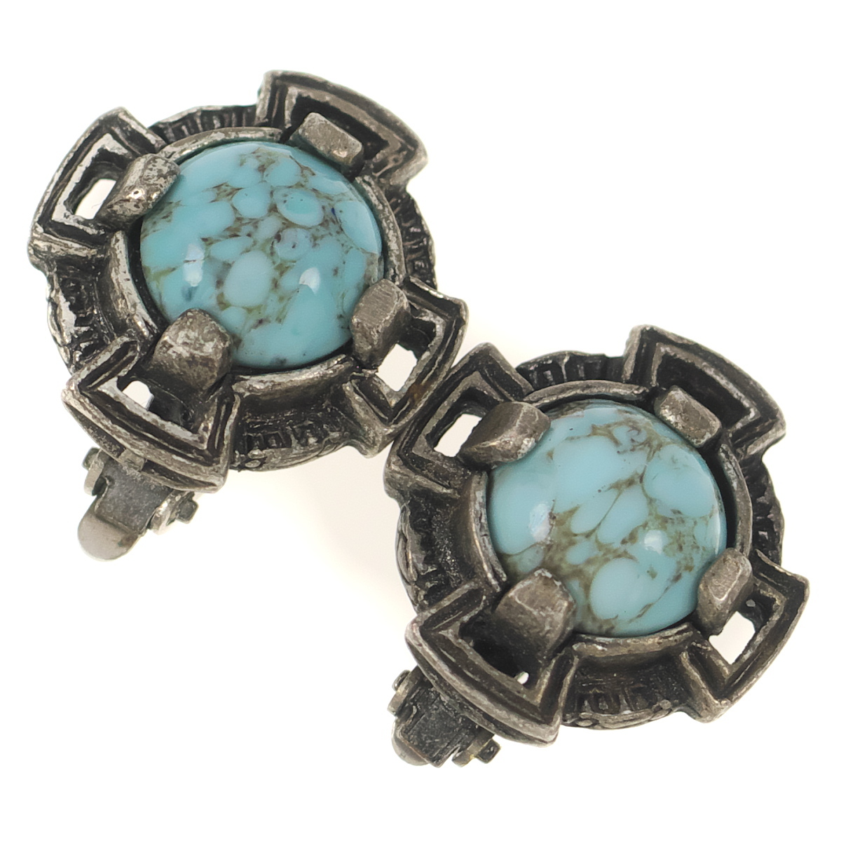 UK3298◆ ケルト十字 クロスモチーフ ターコイズ柄 水色系カボションストーン 英国 イギリス ◆ ヴィンテージ イヤリング ◆