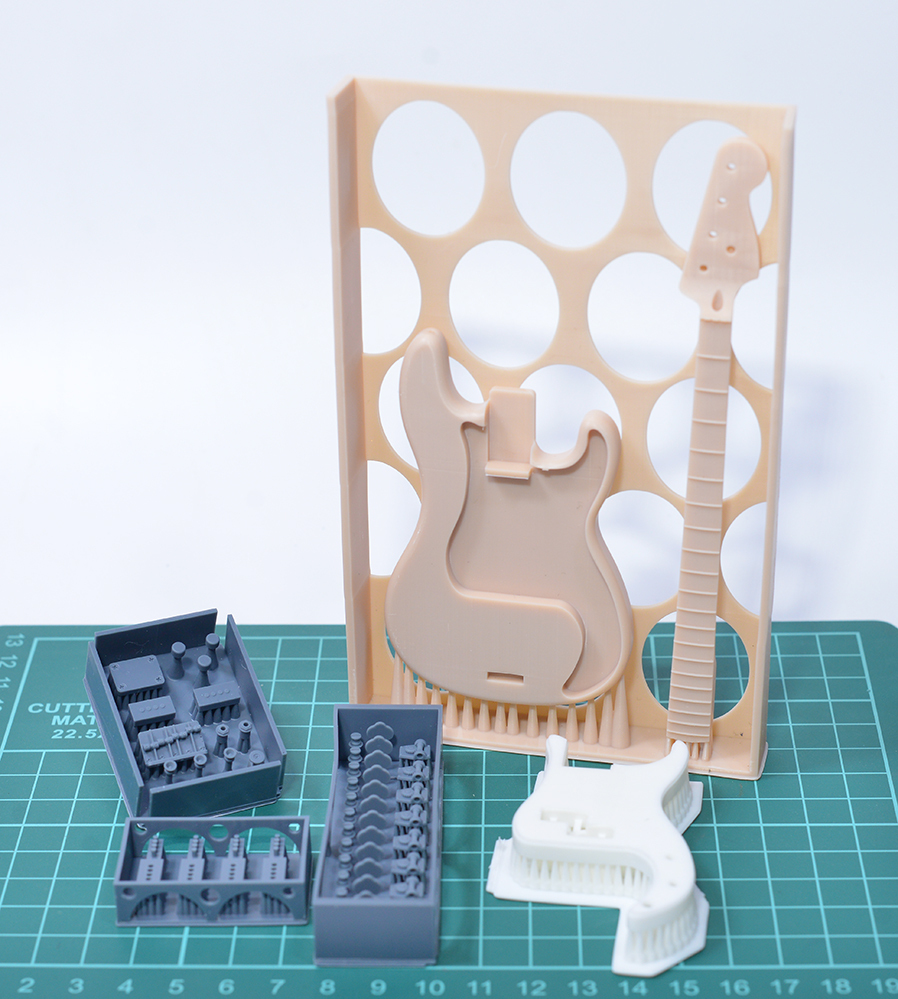 1/6スケールのエレキベースを3DCADで設計、3Dプリンターで出力したものになります