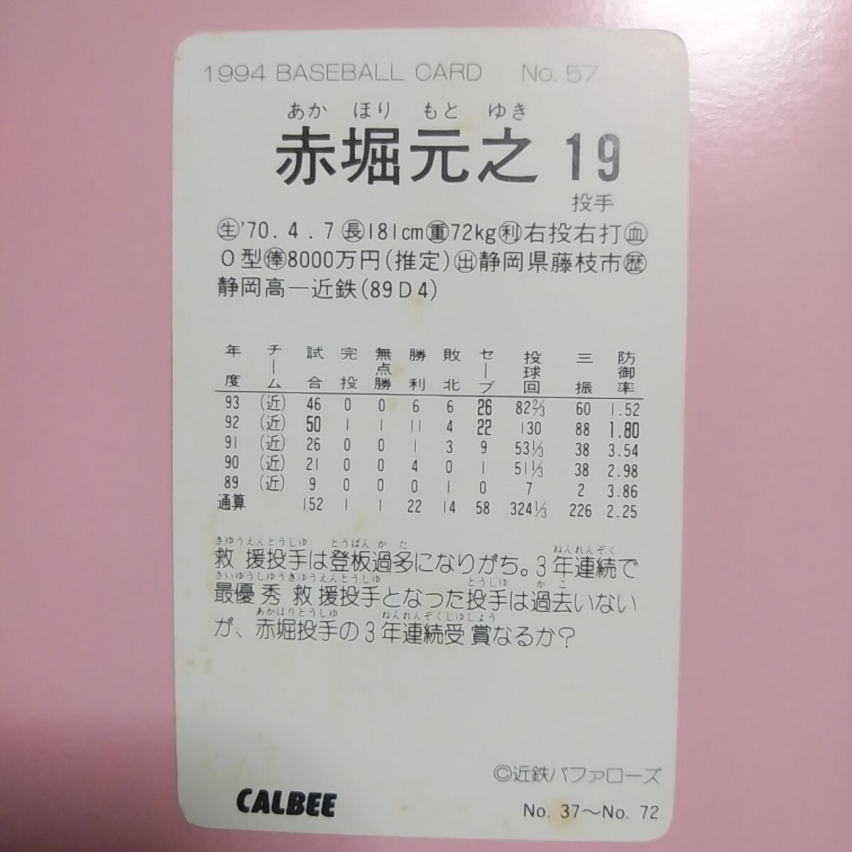 1994カルビー野球カード№57赤堀元之(近鉄)
