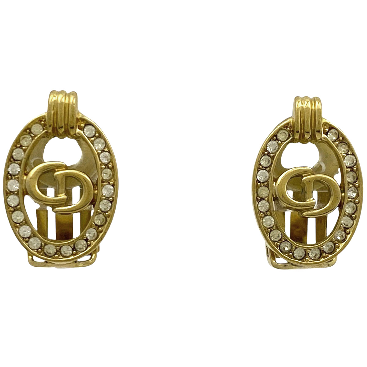 クリスチャンディオール Christian Dior ロゴ ラインストーン イヤリング オーバル 楕円形 イヤリング GP ゴールド レディース 【中古】 |