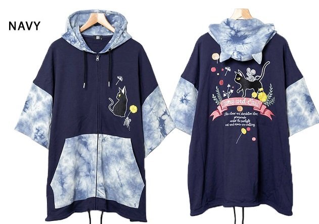 何でもあり、何でもやる新ブランド「LIN」から、ラミ&アール「シロツメクサとたんぽぽの散歩道ドルマンジップパーカー」(AL-75749)のご紹介です。 黒猫のLamy(ラミ)とネズミのEarl(アール)。 陽だまりの道をラミとアールが散歩する姿を背中に落とし込んだ、可愛らしい半袖パーカーです。 絵柄は総刺繍で表現されており、こだわりの詰まった一着に仕上がりました。 さらにタイダイ染めのスウェット生地を切り替え、アクセントにしています。 ボディーには、軽い羽織り心地のライトスウェットを採用。 長めにとられた丈や、袖口に向けて広がったドルマンスリーブなどを取り入れた、変形シルエットとなっております。 | |||||||||||||||