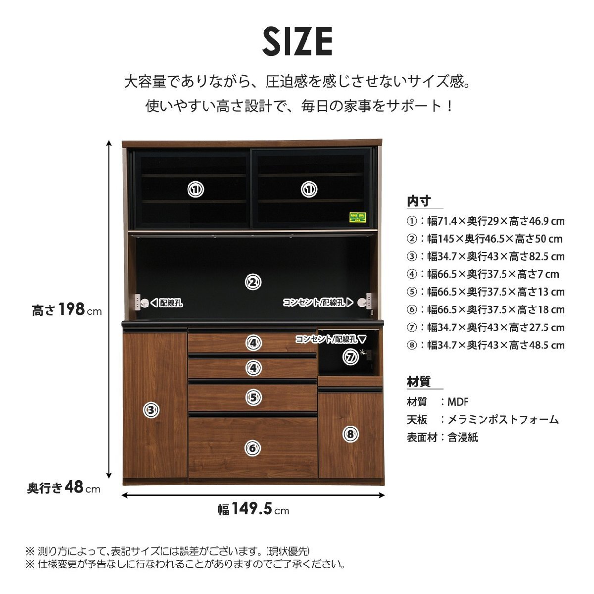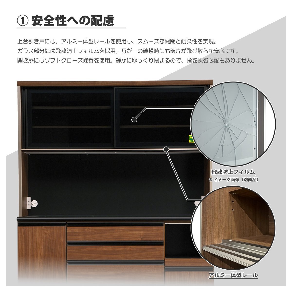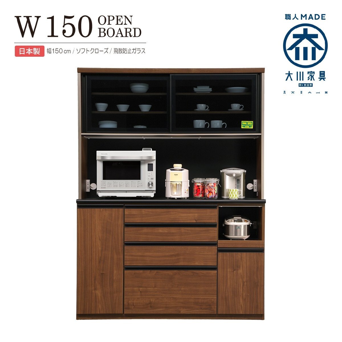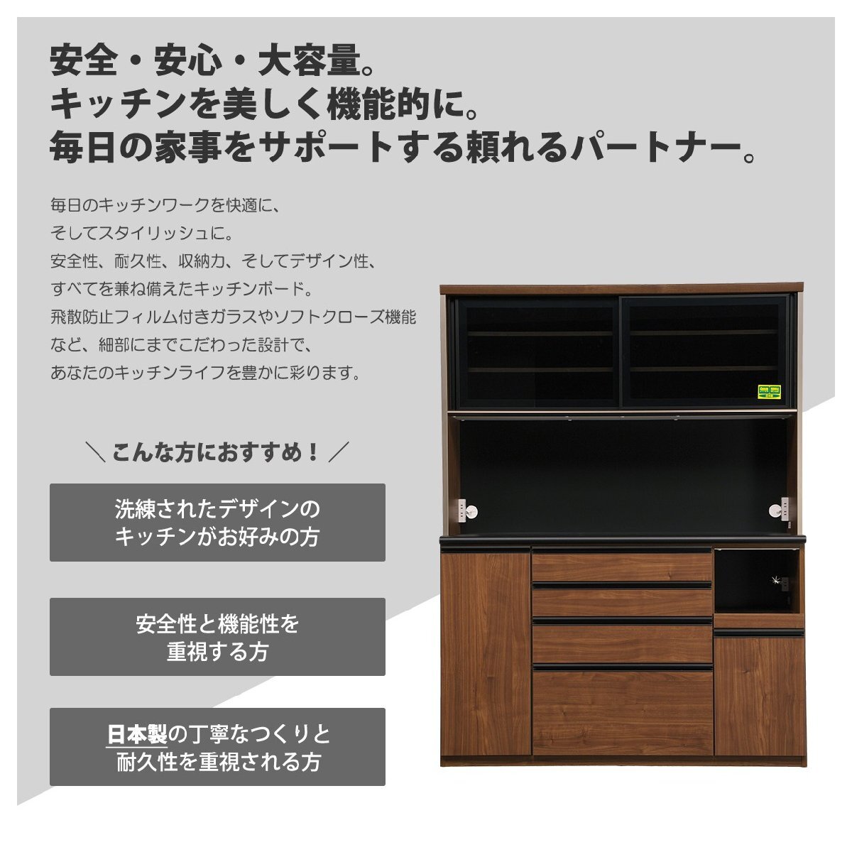 食器棚 大容量 収納 整理整頓 おしゃれ 幅150cm レンジ台 レンジボード 完成品 ソフトクローズ 飛散防止 安全