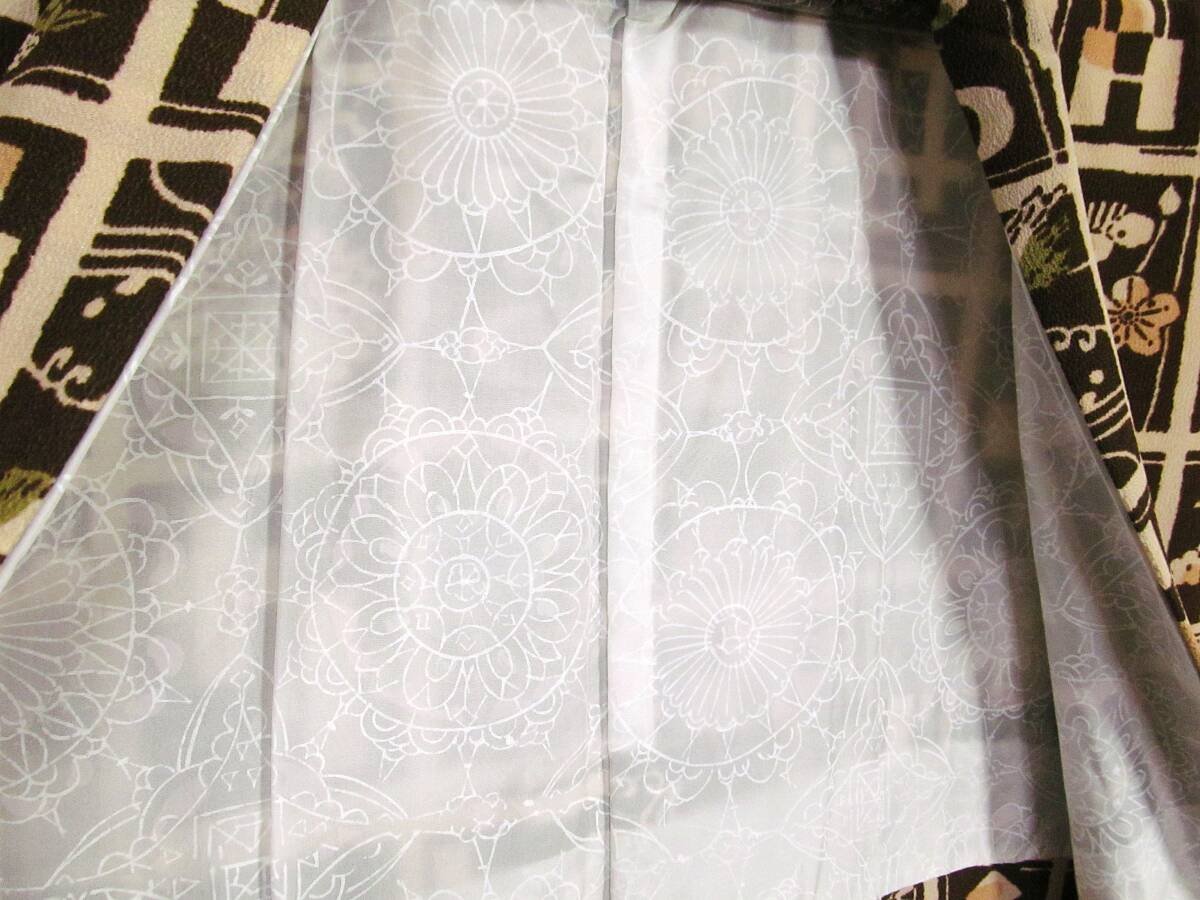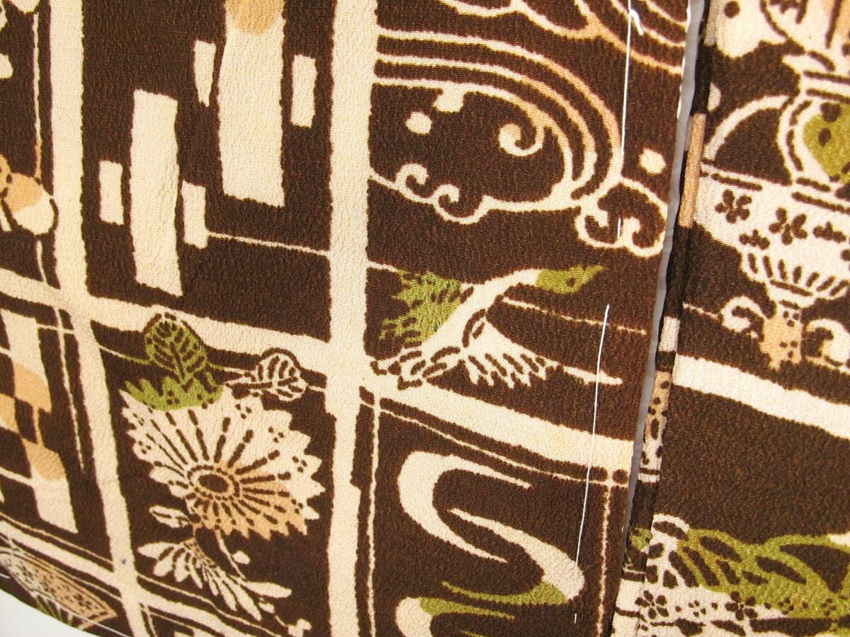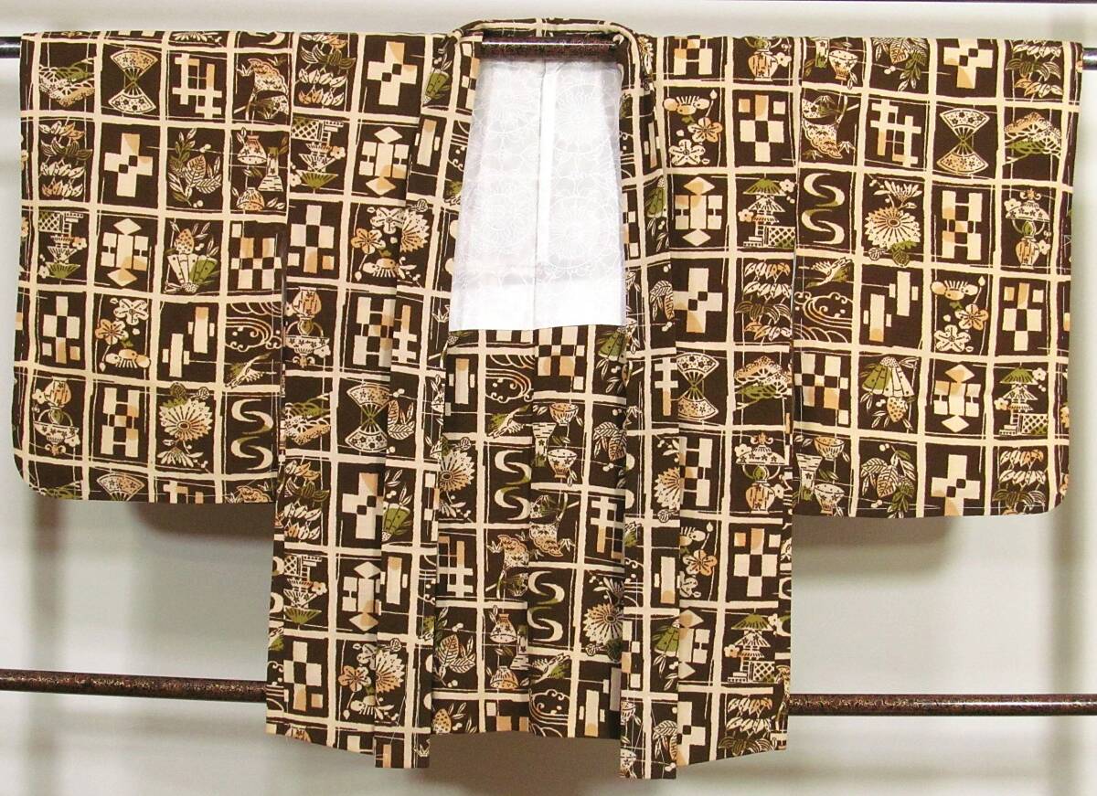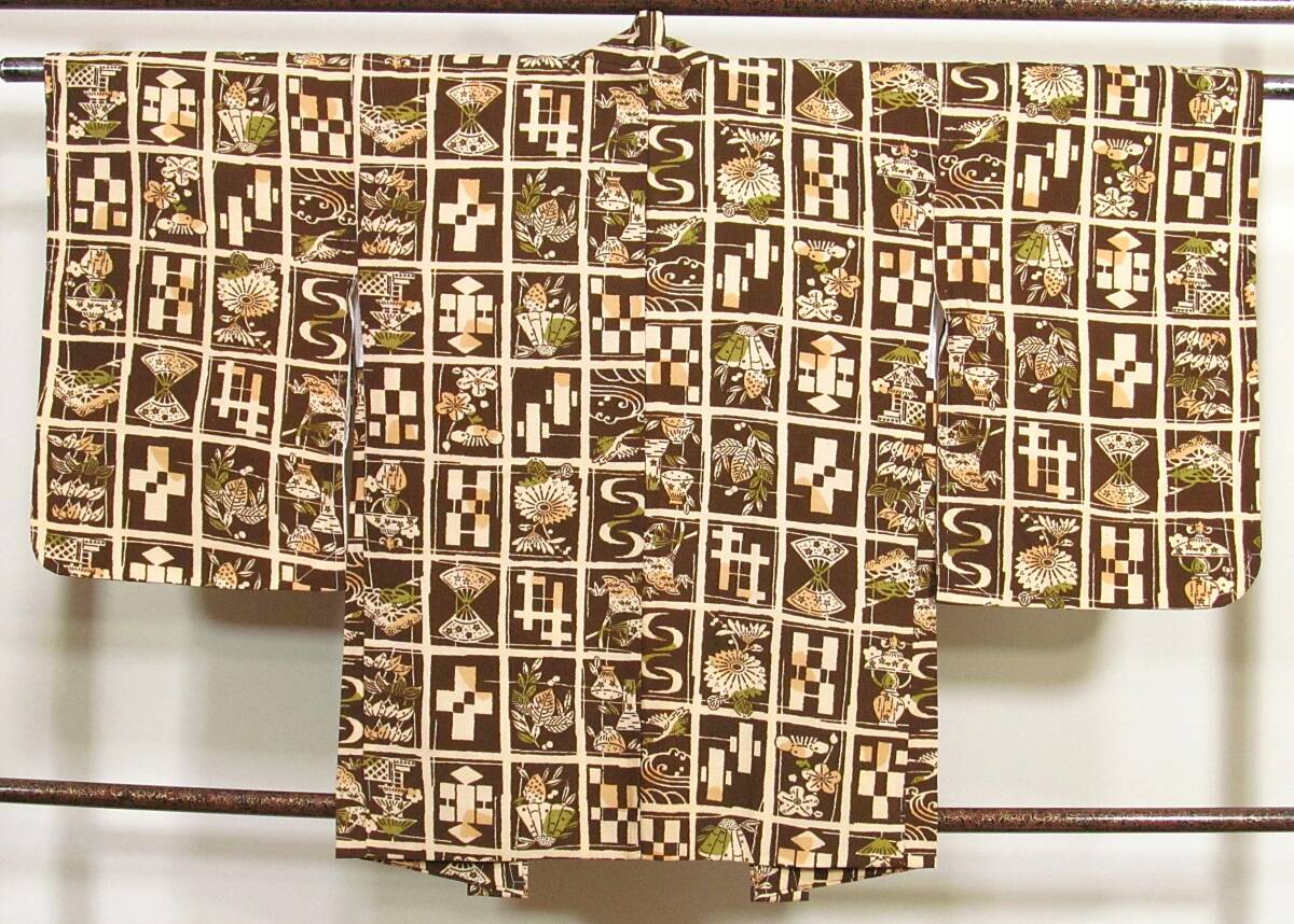 に69 材質不明 羽織 焦げ茶系地格子小紋柄 身丈80cm ★★セール★★
