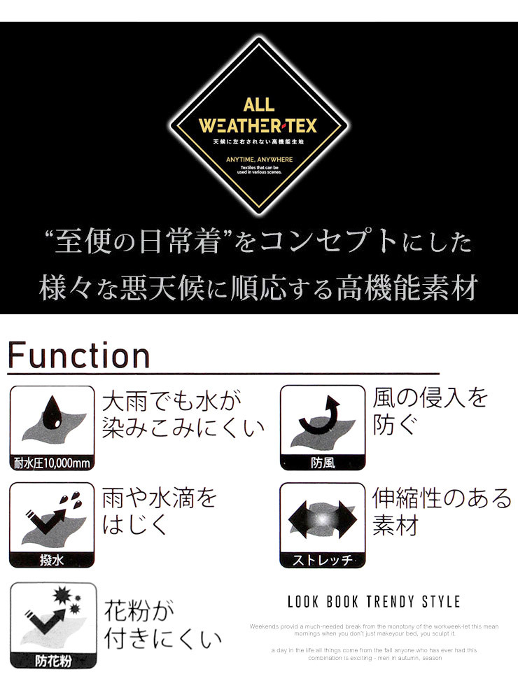 | 商品説明 | 耐水圧10000mmを誇る高機能素材「オールウェザーテックス」のシリーズに、発熱性・蓄熱性に優れた「ソロナオーラ」機能綿を使用した中綿入りの防寒マウンテンパーカーとスタンドブルゾンの登場です。 |