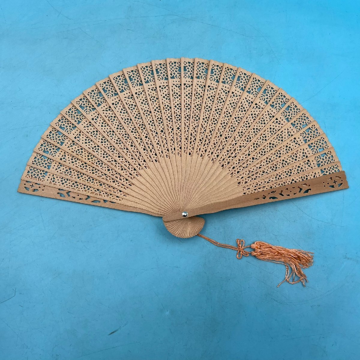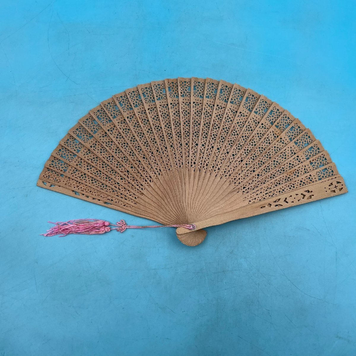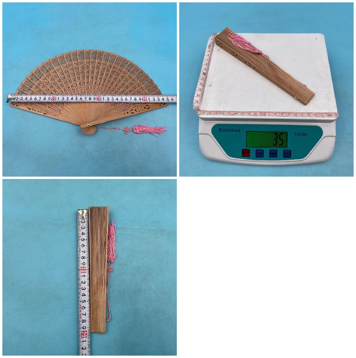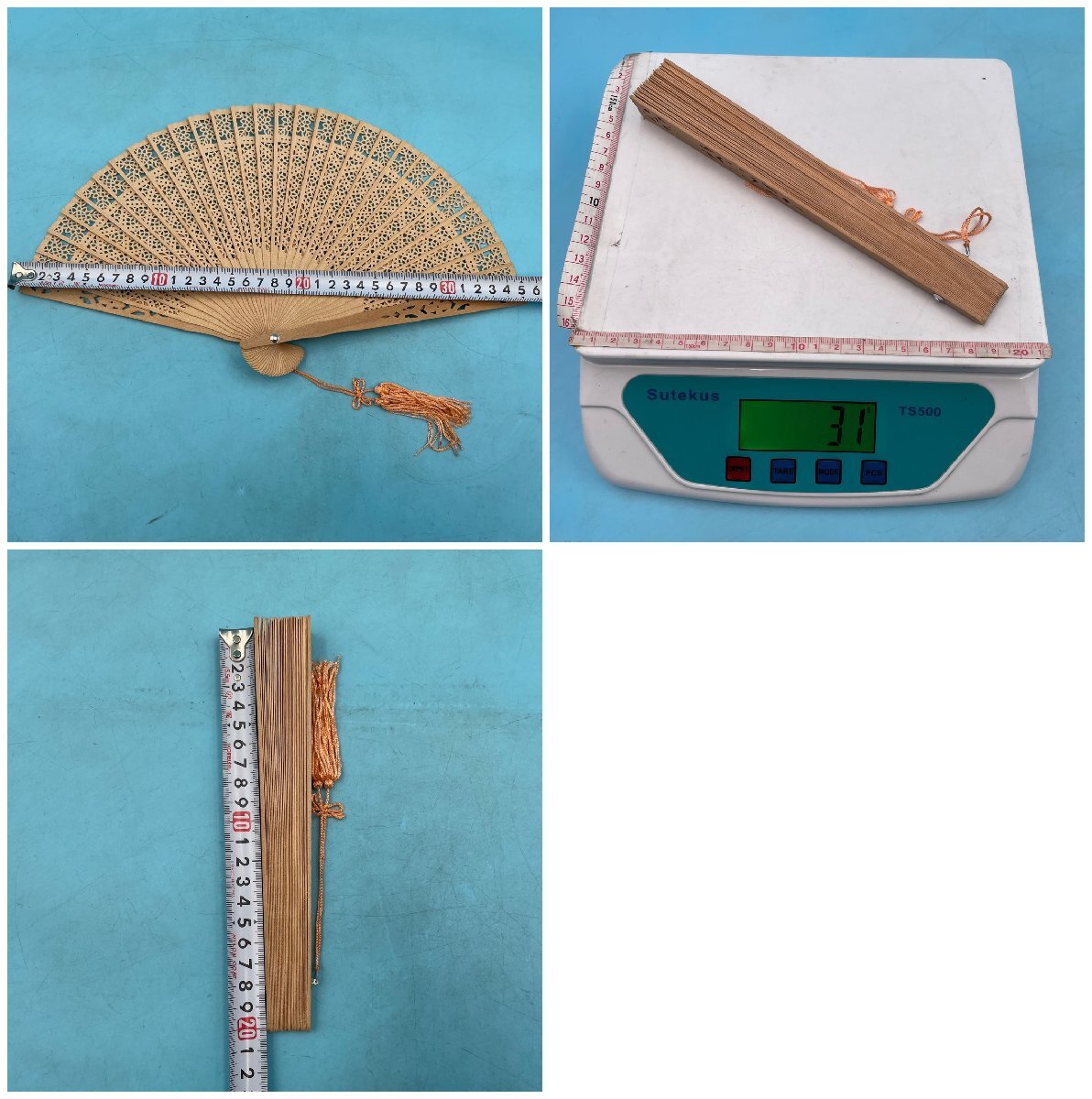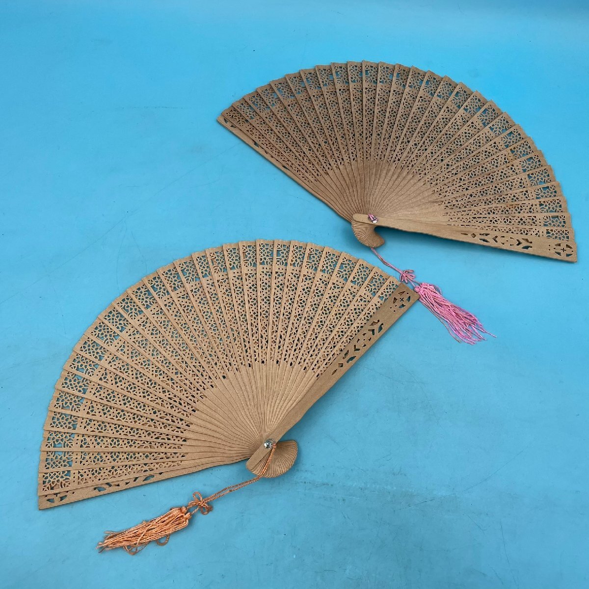 F2【16631P174】扇子 2点 セット 木製 中国 エスニック アジアン 扇 涼 夏 レトロ 透かし彫り お洒落 コレクション インテリア 現状品