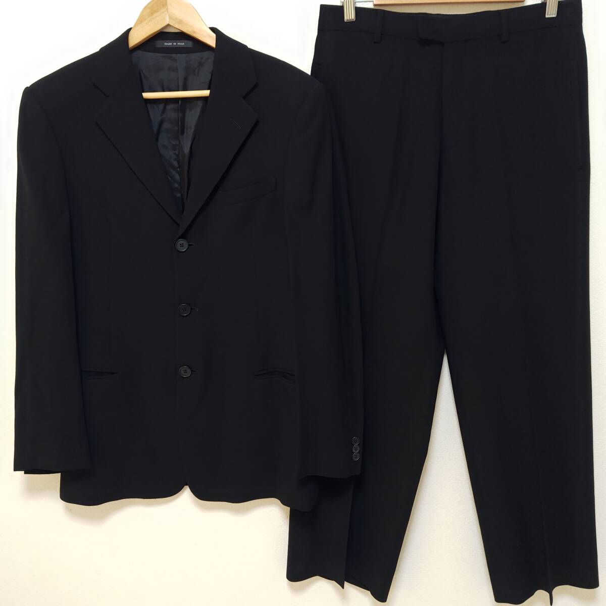 この度は私の商品をご覧頂きありがとうございます。頻繁に商品出品致しますのでフォローして頂けたら嬉しいです。 サイズ: 48 (メンズ L相当)※実寸参照 平置き時:肩幅43㎝、着丈78㎝、身幅48㎝、袖丈64㎝。 腰幅40㎝、全長102㎝、股下75㎝、26㎝。 ※素人採寸考慮。 商品説明:高級ブランド、エンポリオアルマーニのスーツ上下セットです。イタリア製の正規品ですのでご安心くださいませ。コンディションも良好でまだまだお使いいただけるオススメの一品です。ぜひご購入下さい。 他にも沢山出品しておりますので下のマイオークションからチェックしてみてください!当方の商品はすべて一点ものですので買わなければもう手に入りません!完全売切り!この機会がラストチャンス! 【注意】 発送方法はトラブル防止の為、 【飛脚宅配便 100サイズ】 発送のみです。福島県から発送致します。正確な送料は佐川急便ホームページから確認ください。 尚、商品管理上、当方商品すべて出品後包装済みの為、其々の発送となりますので他の商品との同梱不可をご注意ください。 | |||
