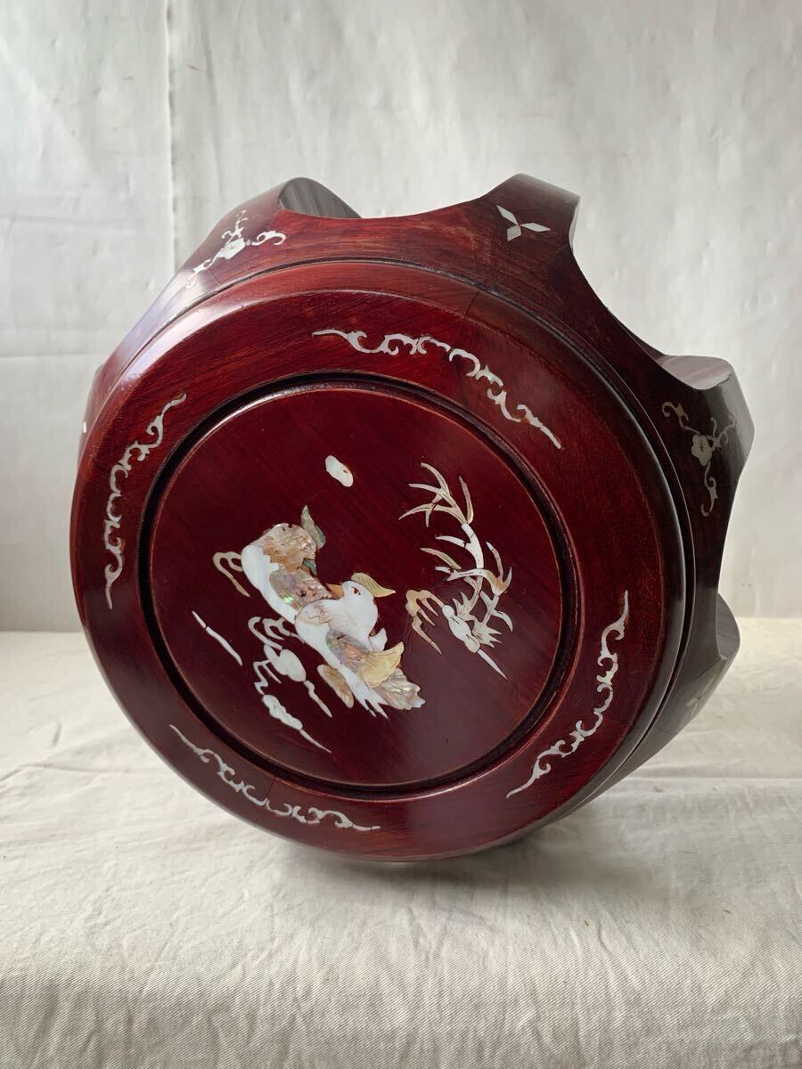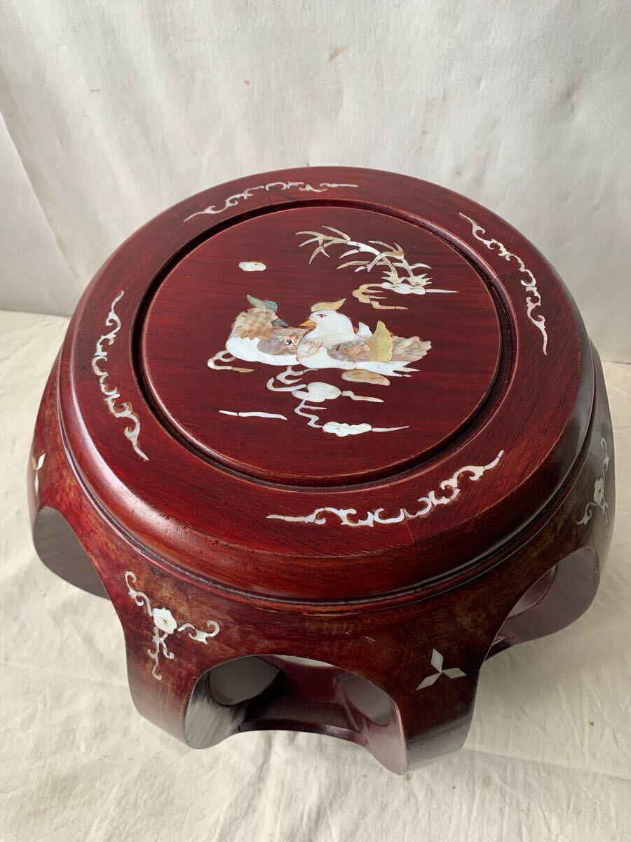 旧家蔵出し品 螺鈿デザインが素敵な木製台です。花台や展示台、スツールなどとして、お部屋のインテリアやお店のディスプレイ、イベント出店時の什器などに使って頂くと素敵だと思います。