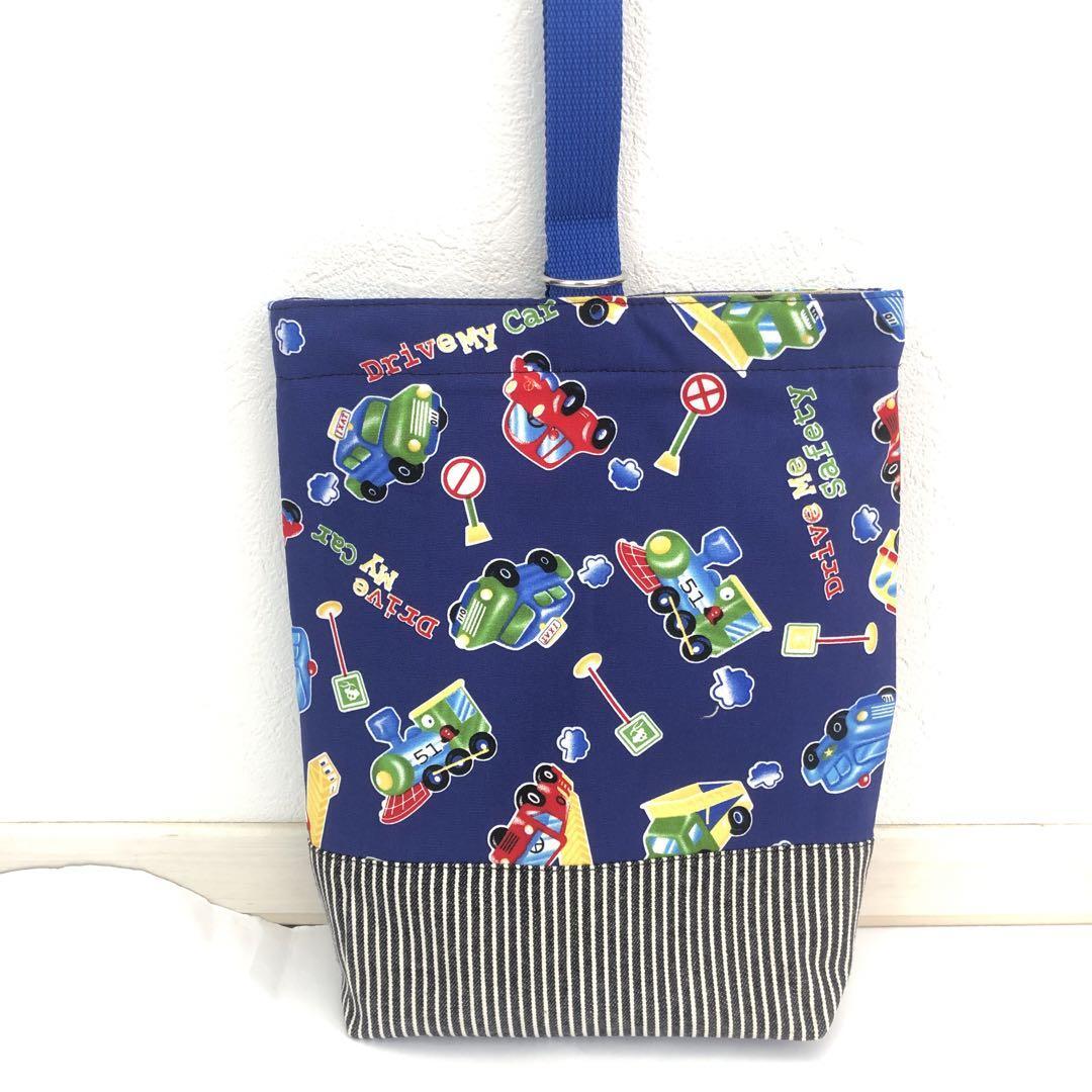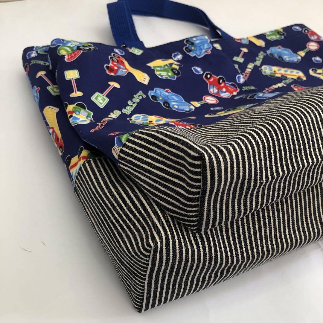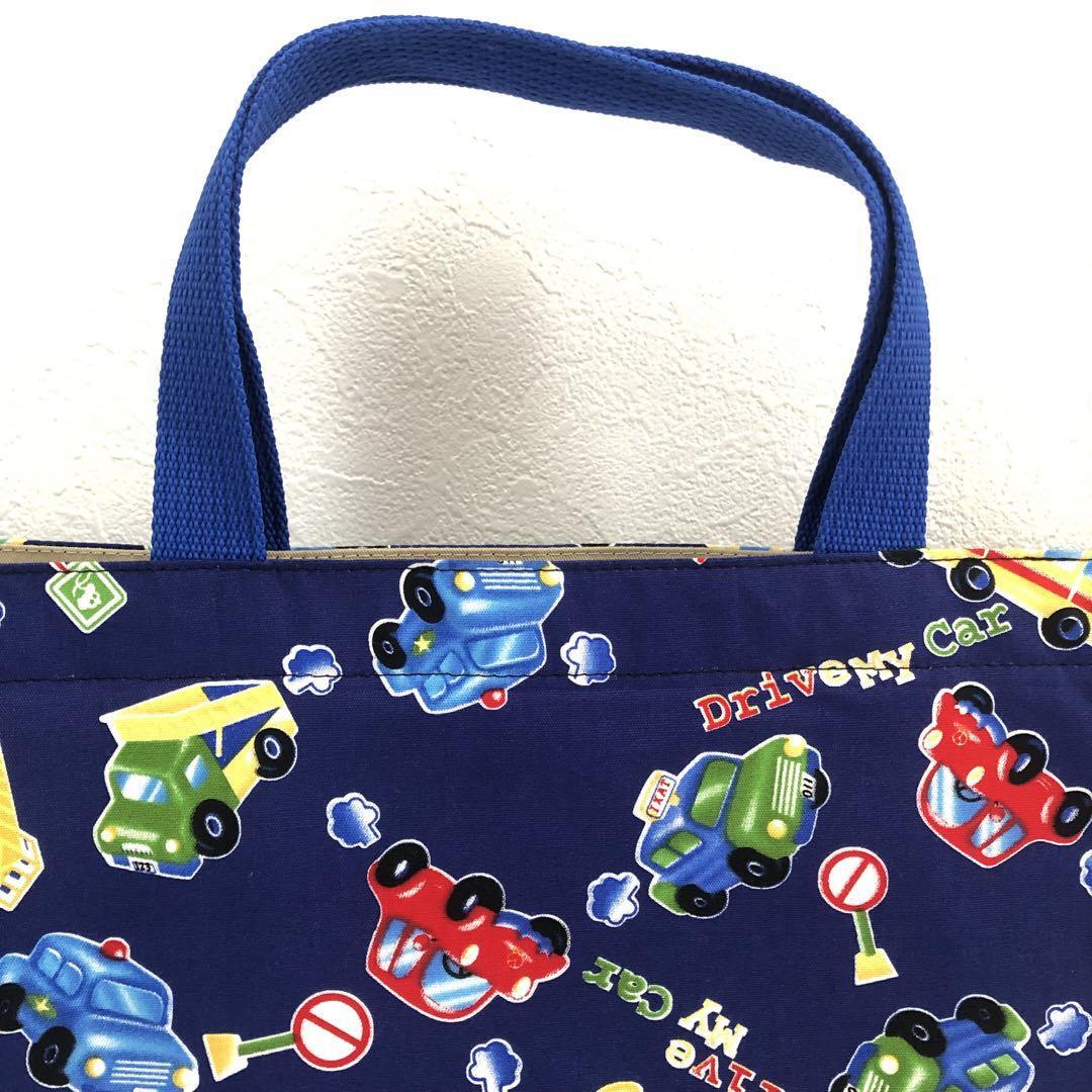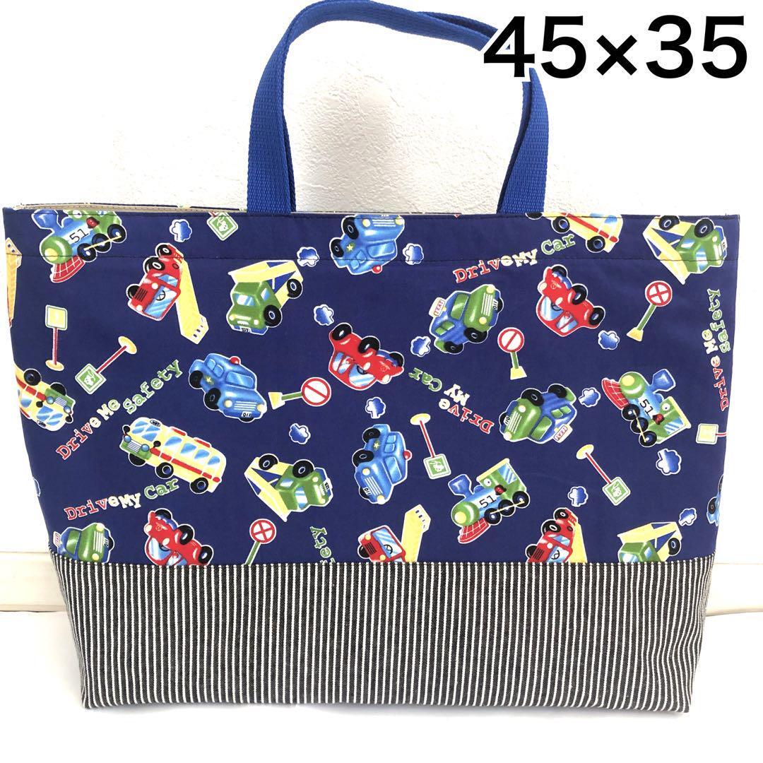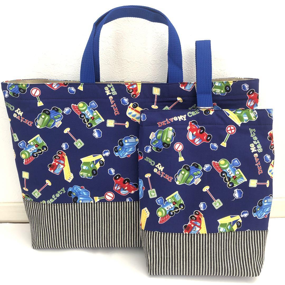 45×35 大きめ 2点セット レッスンバッグ 上履き入れ 働く車柄 青