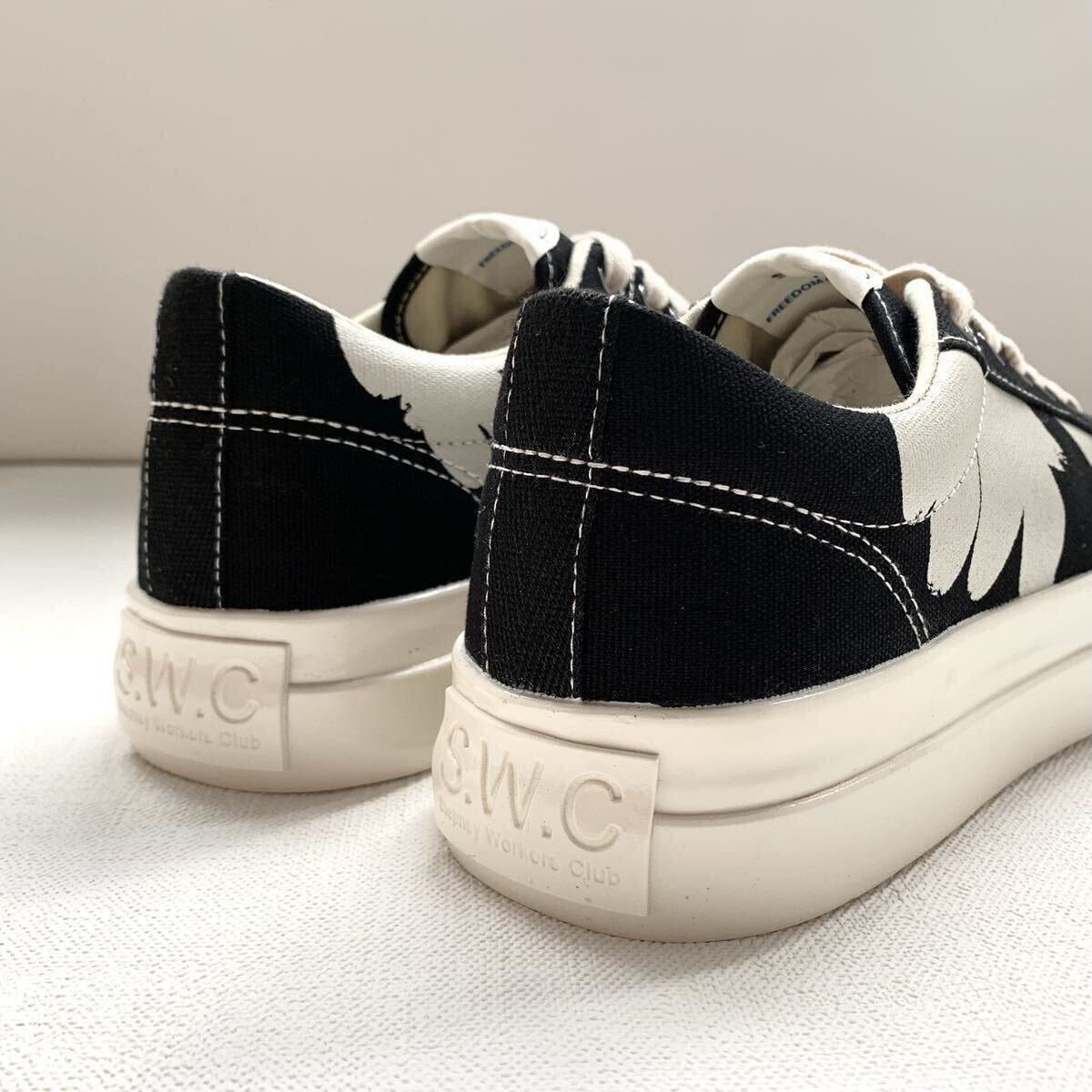 S.W.Cのキャンバス素材のアッパーに、厚手のソールがボリュームを感じさせながらスマートな印象を持たせる、ブランド定番のDELLOWです。本品は、HANDSプリントを施したCANVAS生地を採用したアート的要素の強い1足。インソールは歩きやすさを考慮したクッション材付きの取り外せるカップインソールを採用。普通のスニーカーにはない、さり気ない個性を感じさせる一足です。