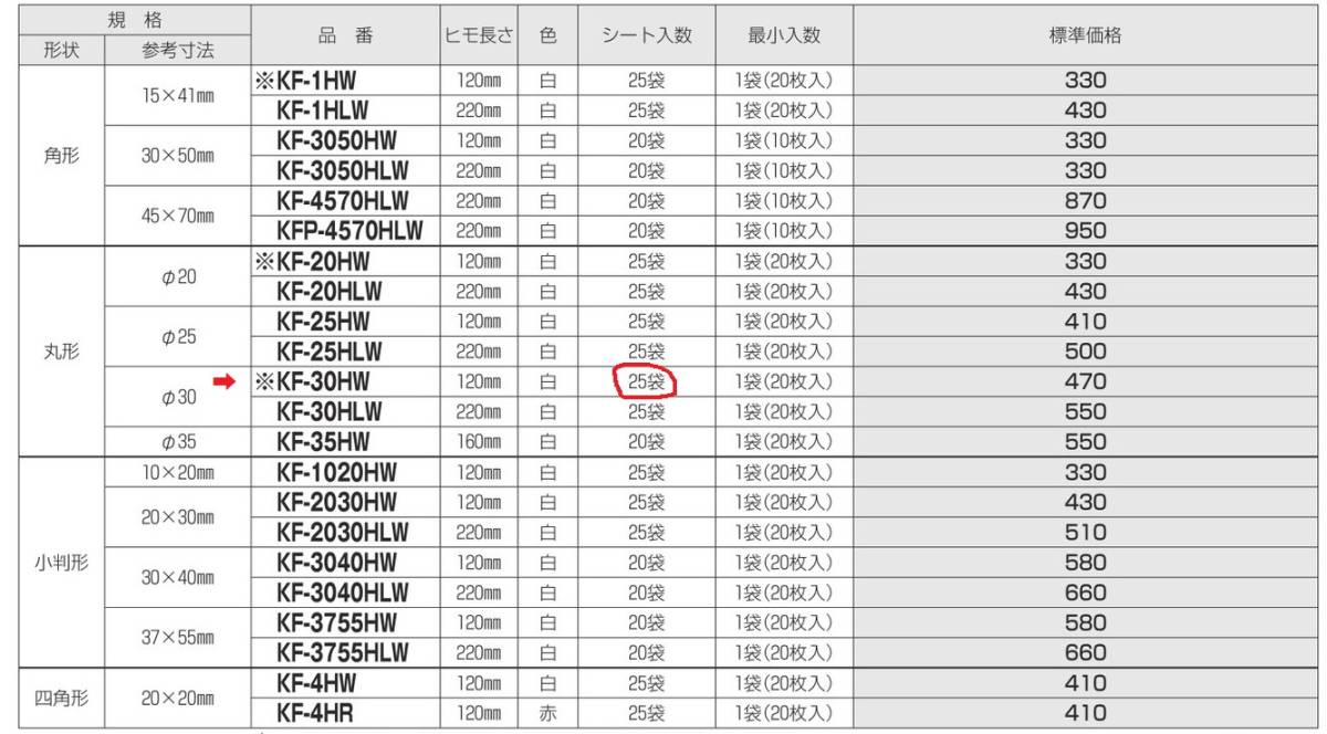 未来工業 ミライ カラーエフ KF-30HW 1シート 500枚