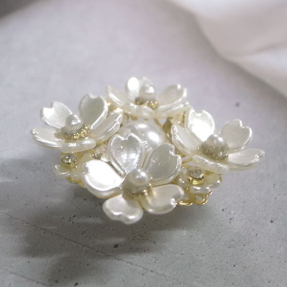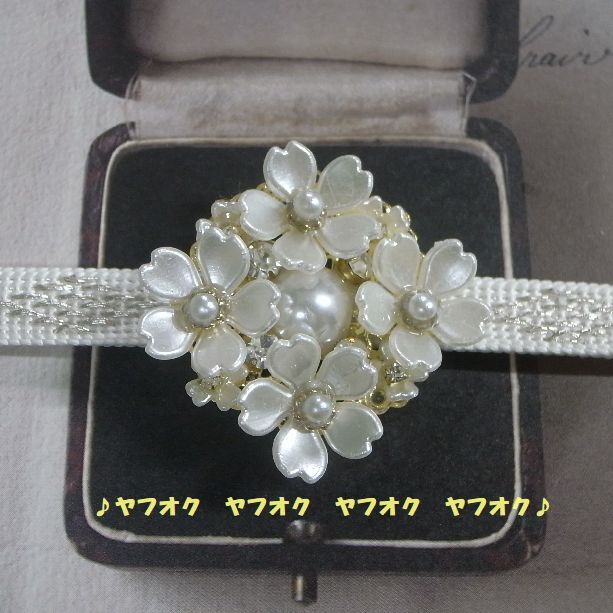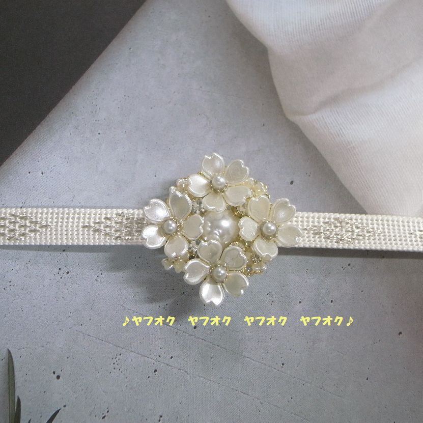 LEAF CLUB ♪人気 ハンドメイド 帯留め 帯留 桜 パール 真珠 ビーズ 花 フラワー 春 花見 満開 ホワイト/白