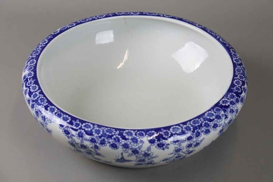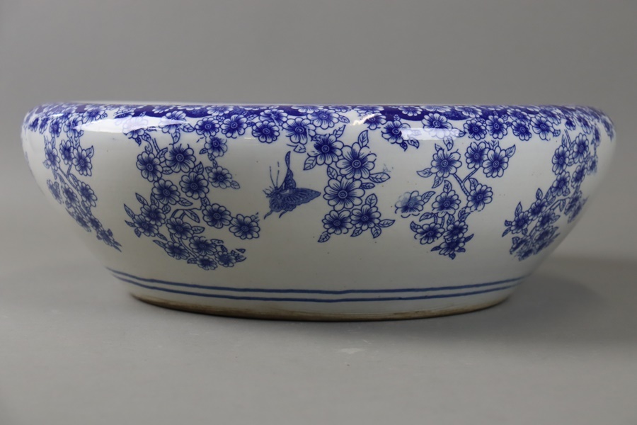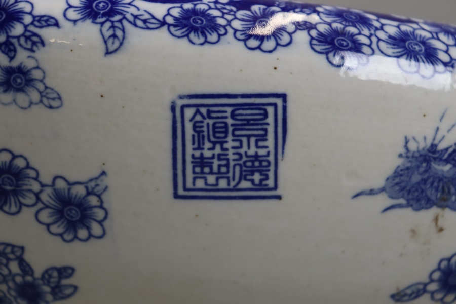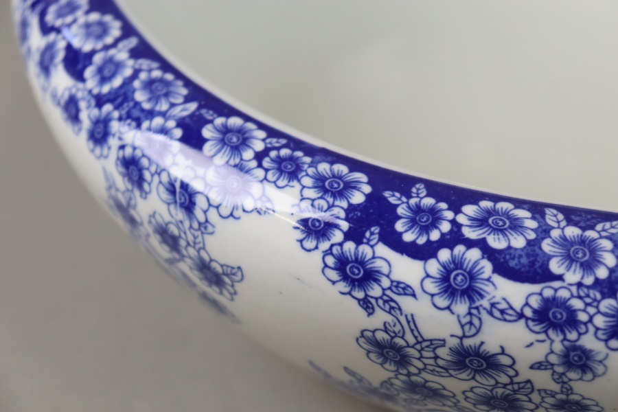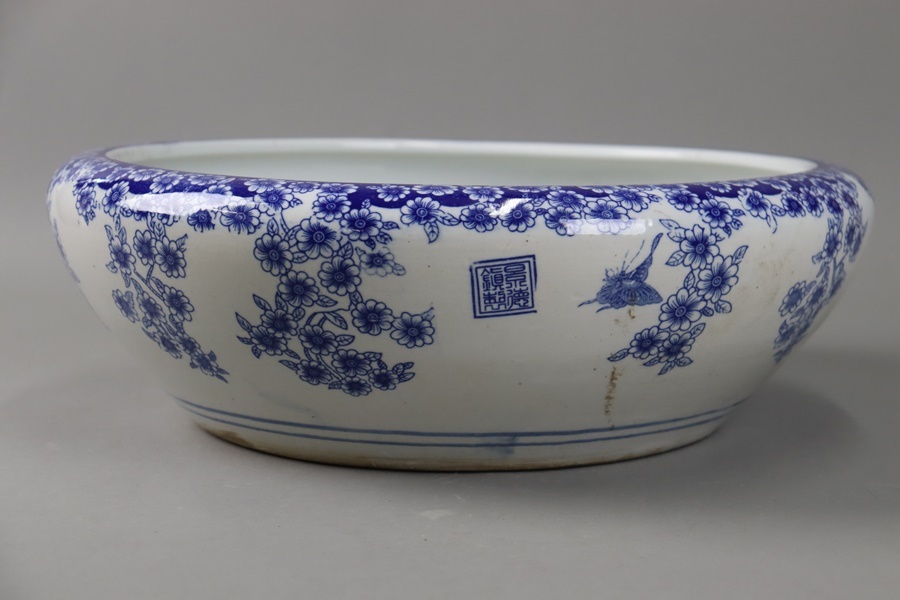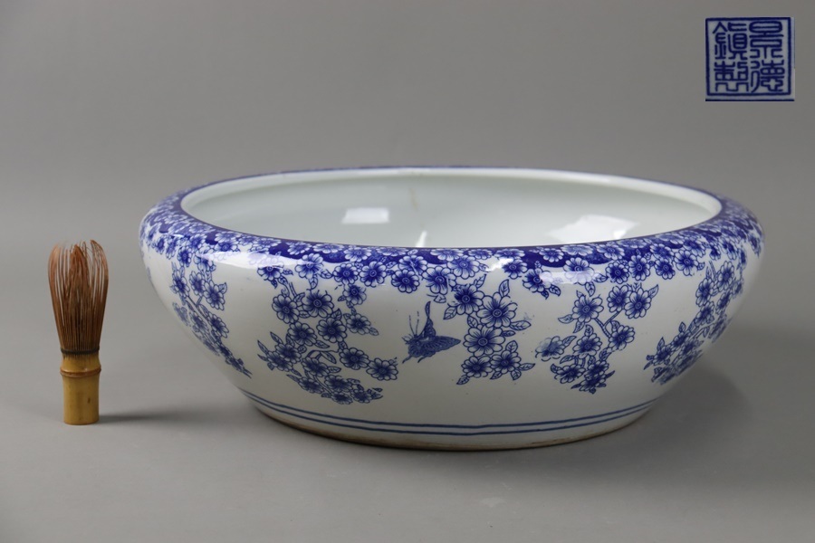 【中国美術 景徳鎮製 染付 水鉢 幅41cm】